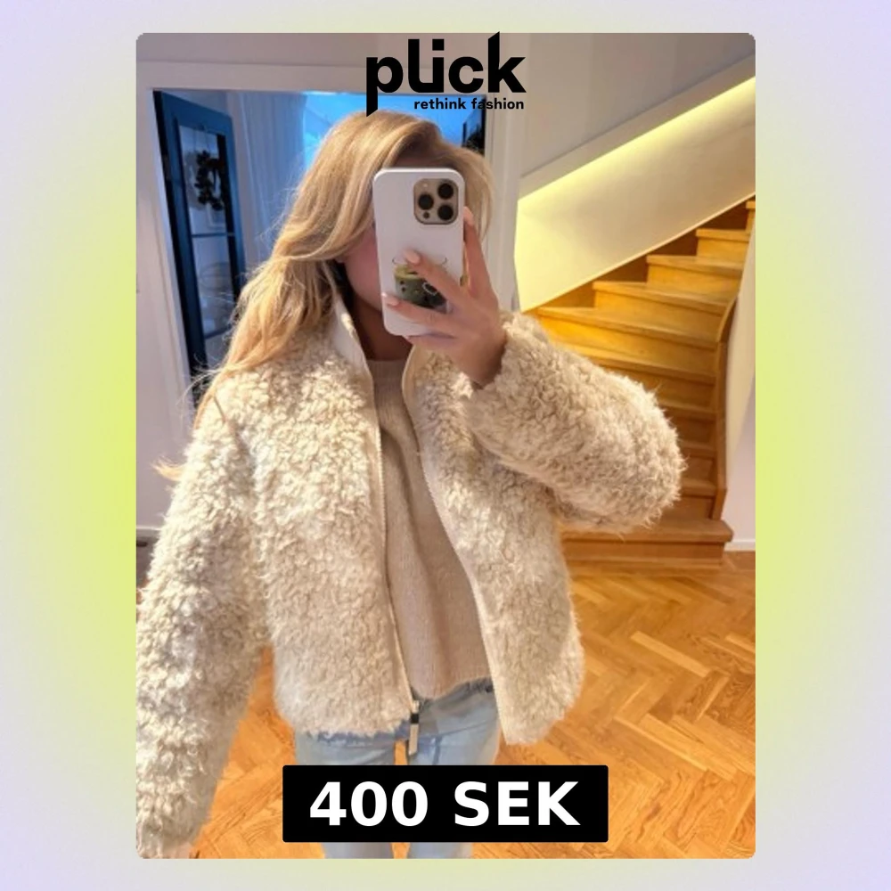 Supermysig beige teddyjacka med fluffig struktur och dragkedja framtill. Jackan har en rak passform och hög krage som håller dig varm. Perfekt att slänga på sig över en hoodie eller stickad tröja. Enkel att matcha med jeans eller kjol.