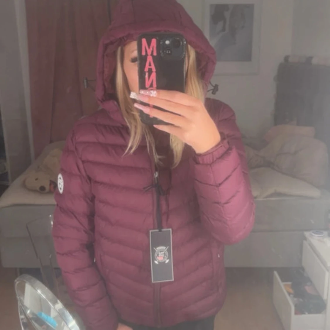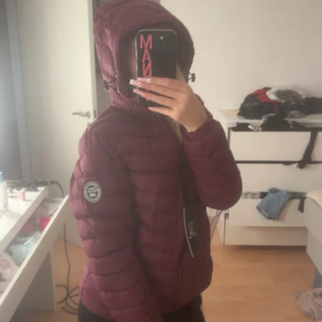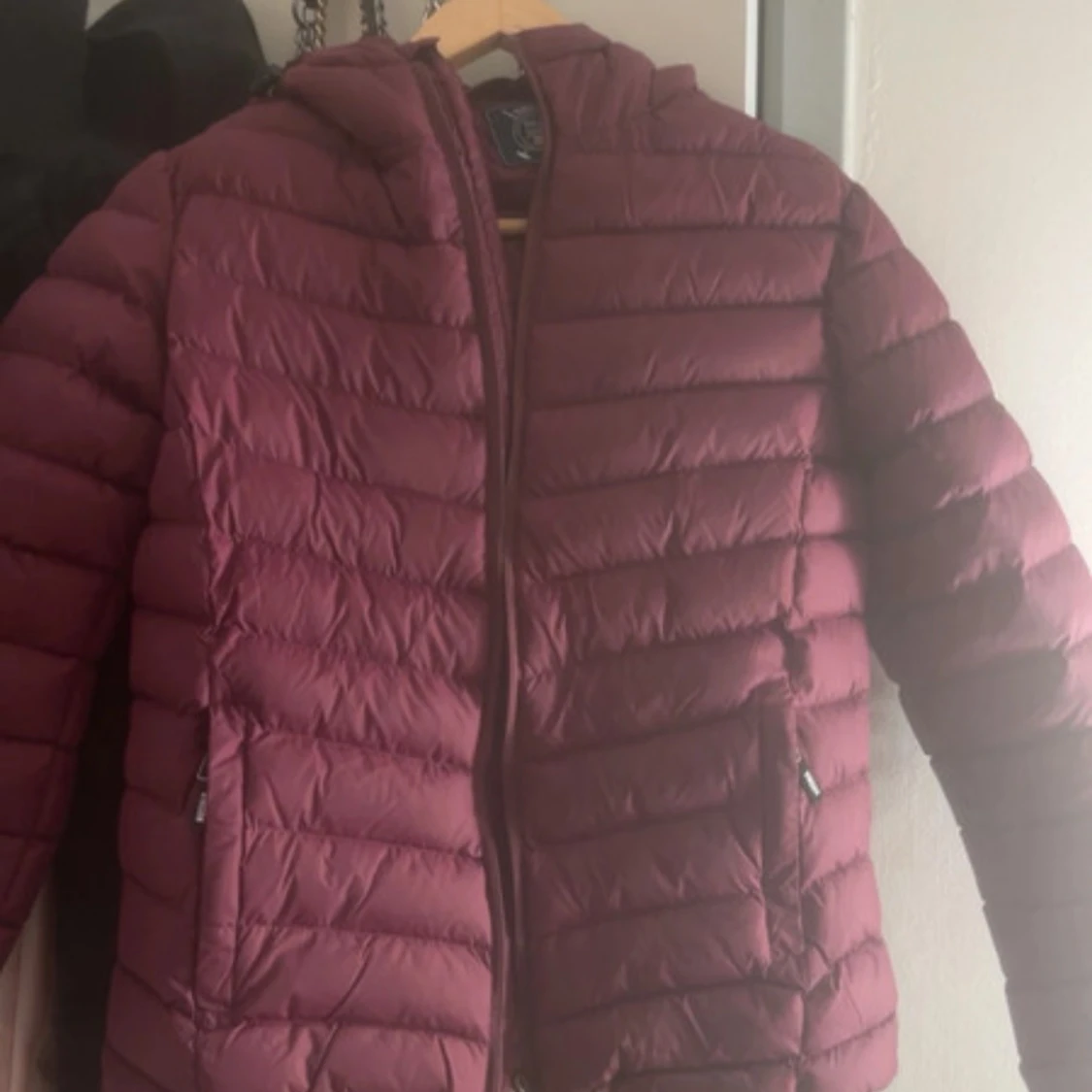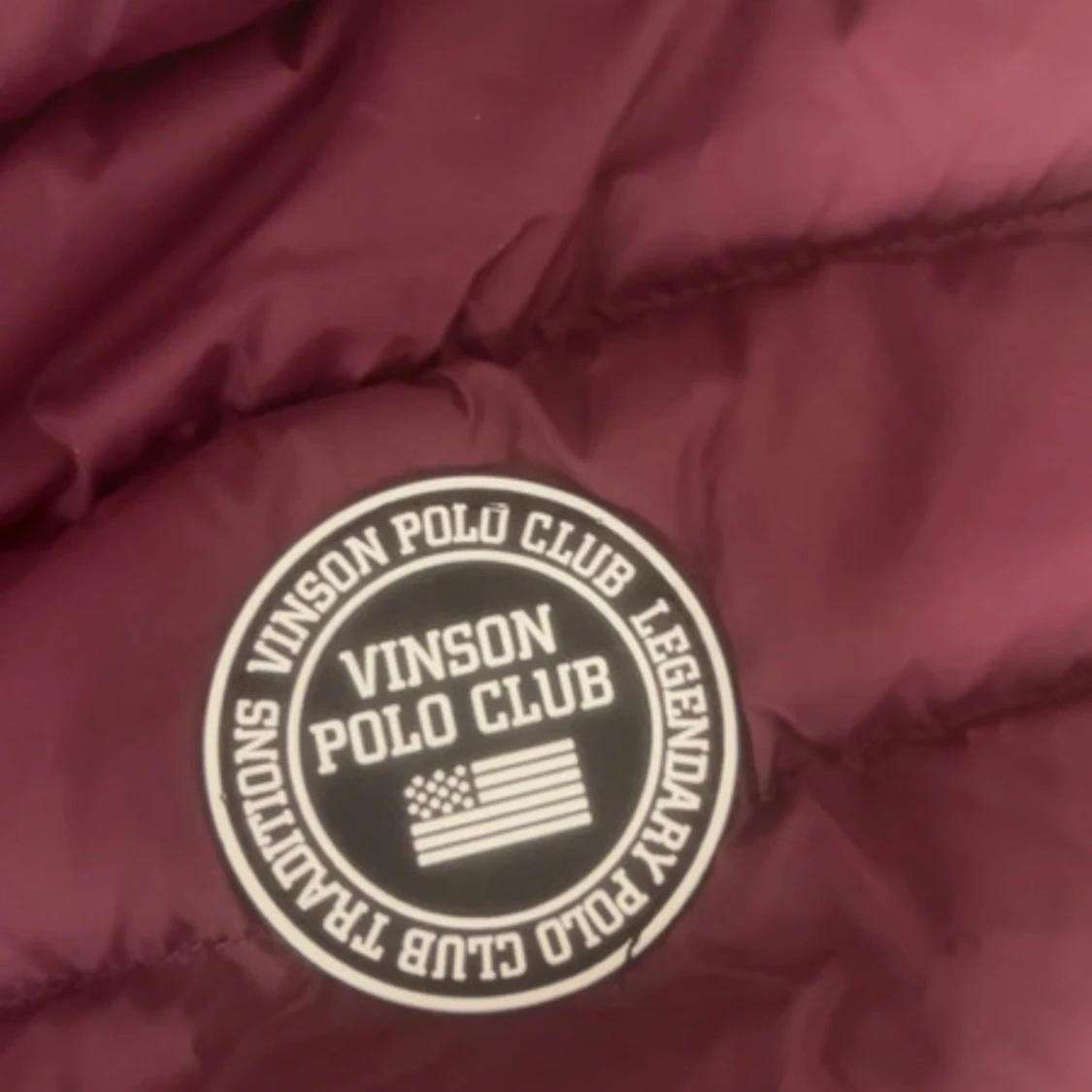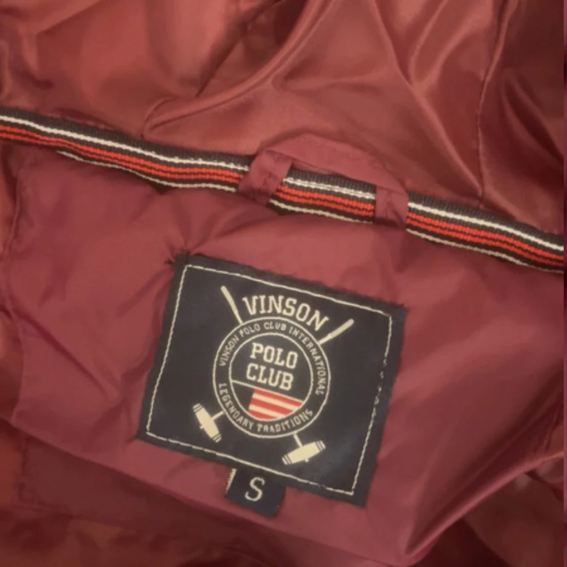 Säljer en vinröd pufferjacka från Vinson Polo Club i storlek S. Jackan har huva med dragsko, två fickor med dragkedja och ett emblem på ärmen. Perfekt för kyliga dagar och har en snygg, sportig look.
