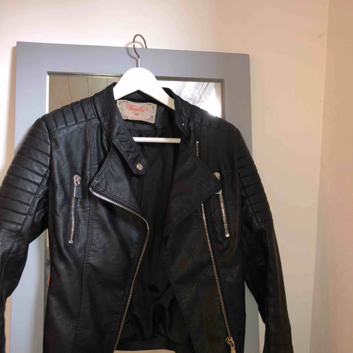 Skinnjacka ifrån chiquelle i strl 36 (står 38 på lappen men är liten i storleken så räknas som en 36a) I använt men riktigt fint skick Nypris 699:- Betalning sker via swish💸 Köparen står för frakten💕