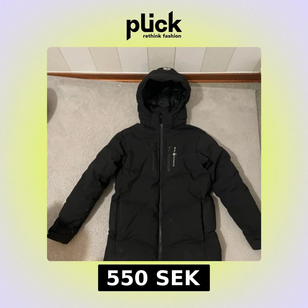 Svart dunjacka från Sail Racing med stor, fodrad huva och flera praktiska fickor med dragkedja. Jackan har en clean look, lång ärm och tydlig logga på bröstet. Perfekt för kalla dagar och har en snygg, sportig vibe.