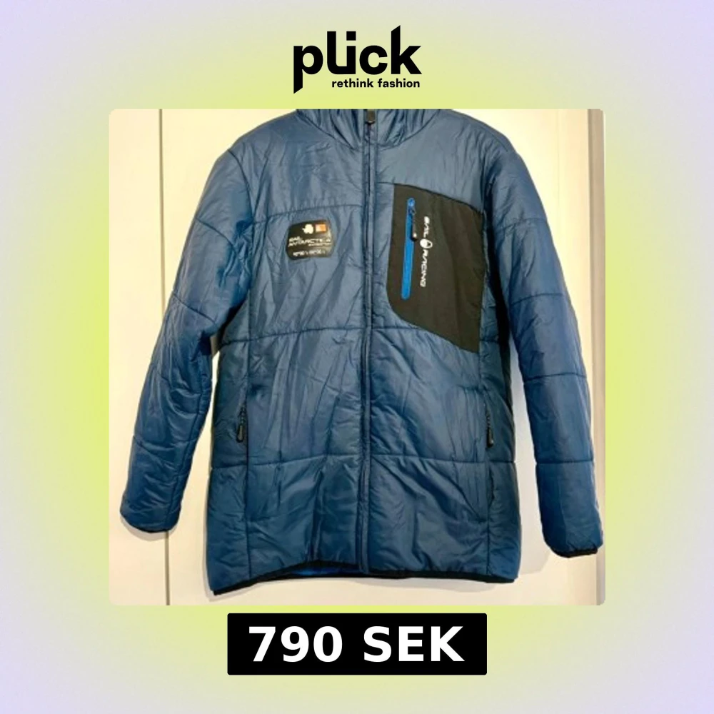 Blå pufferjacka från Sail Racing med svart bröstficka och blå dragkedja. Jackan har fast huva, två sidofickor med dragkedja och patch med 'Sail Antarctica Expedition' på bröstet. Perfekt för kalla höstdagar och har en sportig vibe. Dunfoder, lättviktsmaterial som andas. Vattentätt yttermaterial som andas. Nypris 1900kr.