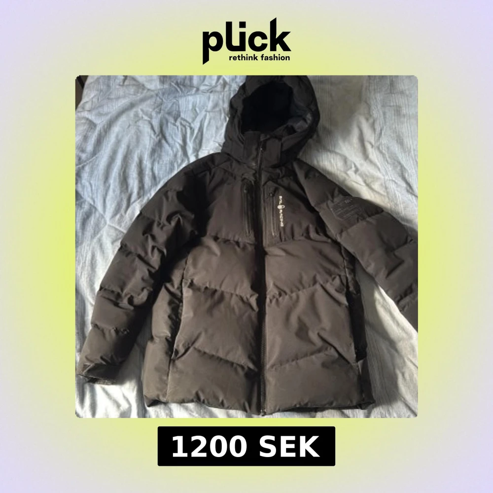 Svart pufferjacka från Sail Racing med huva och dragkedja framtill. Jackan har två stora fickor på sidorna och en bröstficka med Sail Racing-logga. Hör av er om ni vill ha fler bilder och info😁