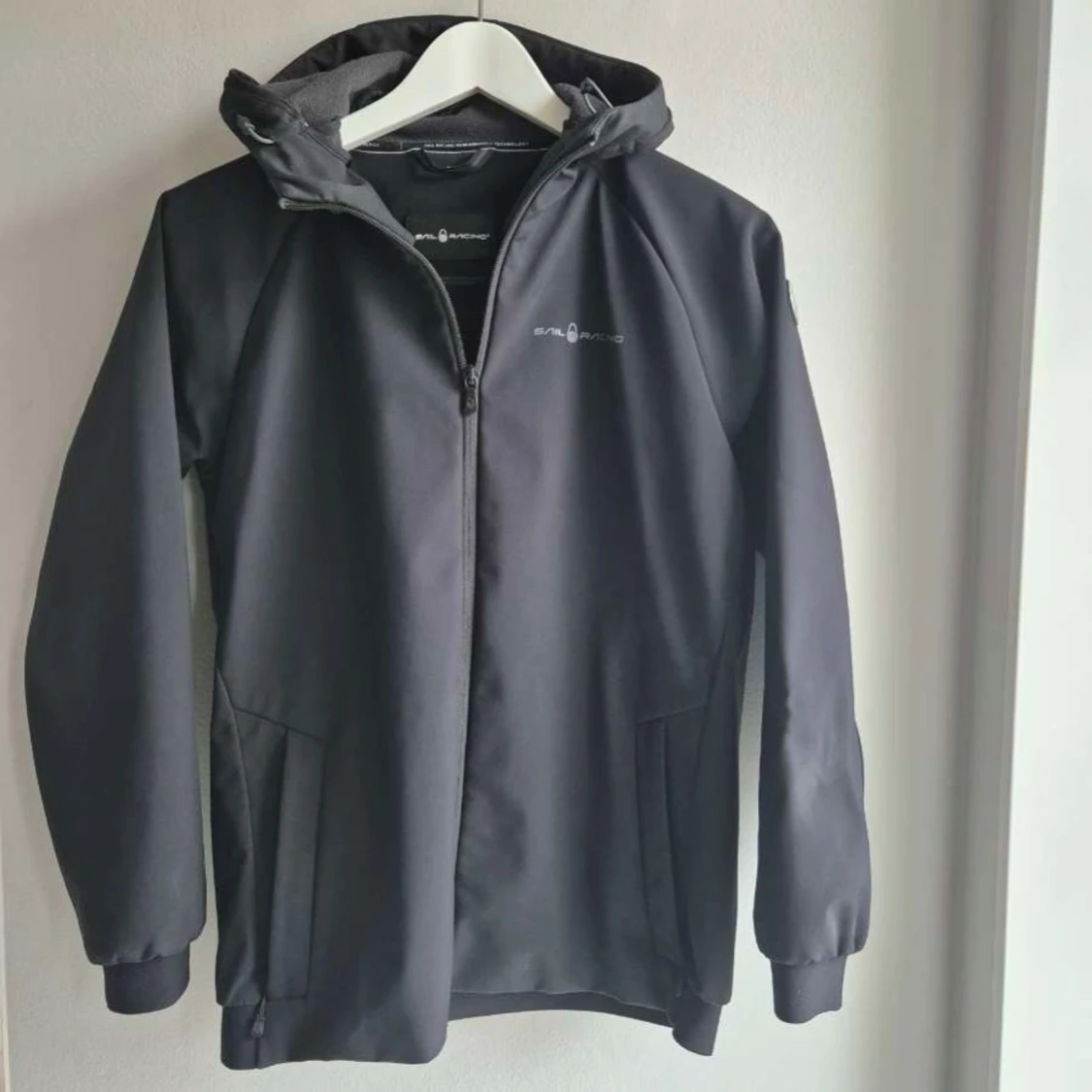 Snygg svart jacka från Sail Racing med dragkedja och huva. Perfekt för blåsiga dagar. Jackan har långa ärmar och en stilren design med logotyp på bröstet.