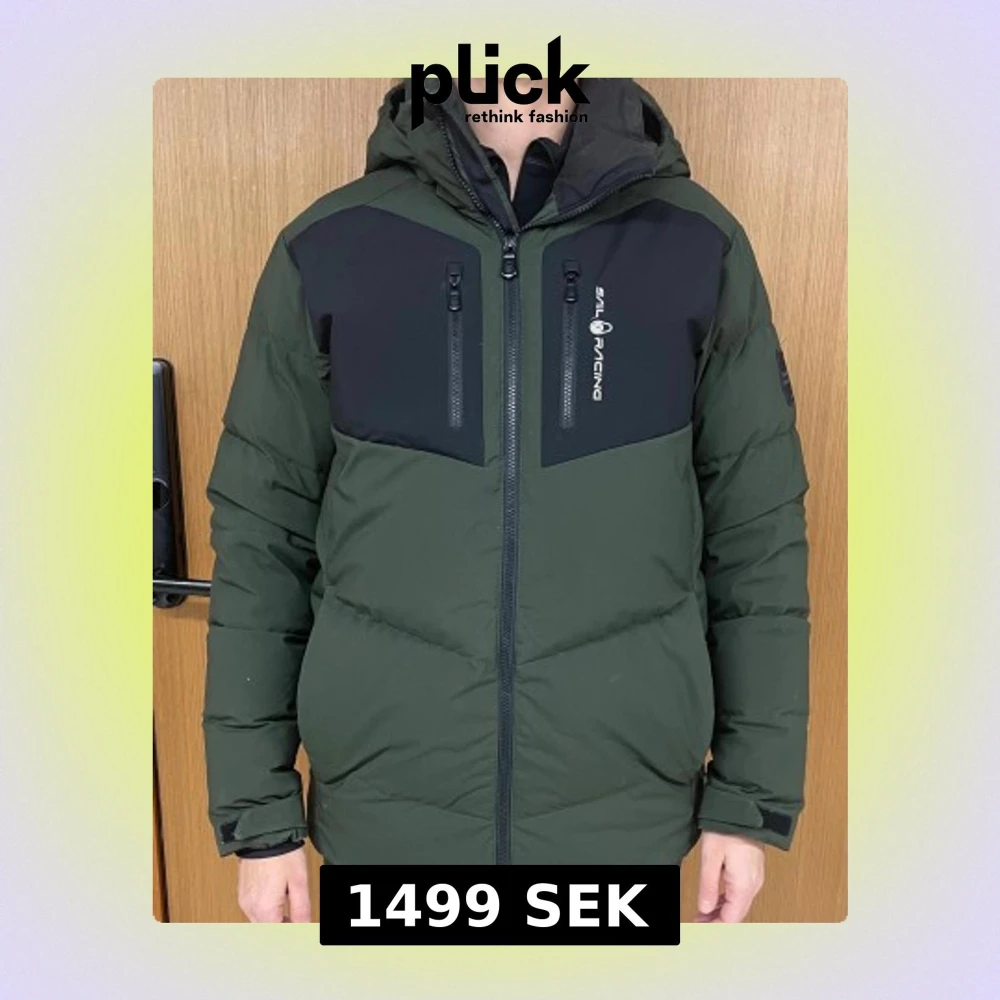 Snygg grön och svart dunjacka från Sail Racing med huva och flera dragkedjeförsedda fickor. Jackan har en sportig look med logga på bröstet och patch på ärmen. Perfekt för kalla dagar med sin vadderade design och höga krage.