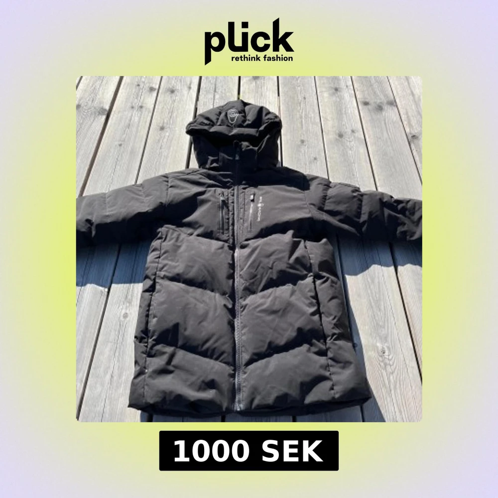 Säljer en svart dunjacka från Sail Racing med huva och dragkedja. Jackan har en bröstficka med dragkedja och Sail Racing-logga samt patch med 'Sail Antarctica'. Perfekt för kalla dagar och riktigt varm tack vare dunfyllning.