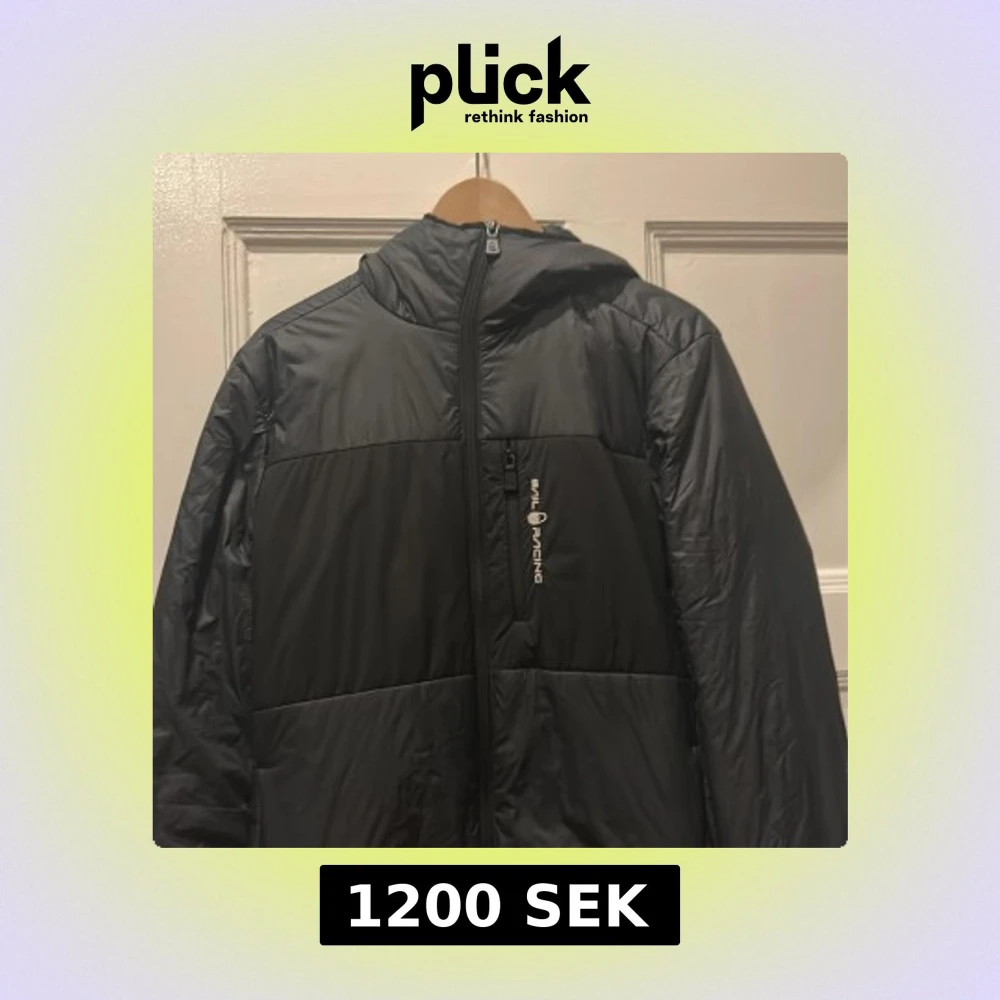 Svart pufferjacka från Sail Racing med huva och snyggt broderad logga på bröstet. Jackan har en vertikal bröstficka med dragkedja och är tillverkad i lätt syntetmaterial. Perfekt för dig som gillar stilren och sportig look. I skick så är den en 8. Jacka har inga hål eller defekter!