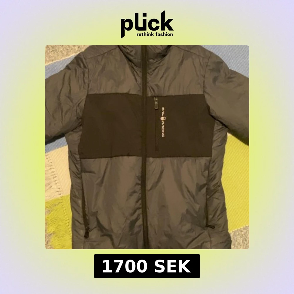 Säljer en svart och grå pufferjacka från Sail Racing i storlek small. Jackan har huva, dragkedja framtill och en bröstficka med logga. Har en liten skada i fram vid kedjan (Bild 5)