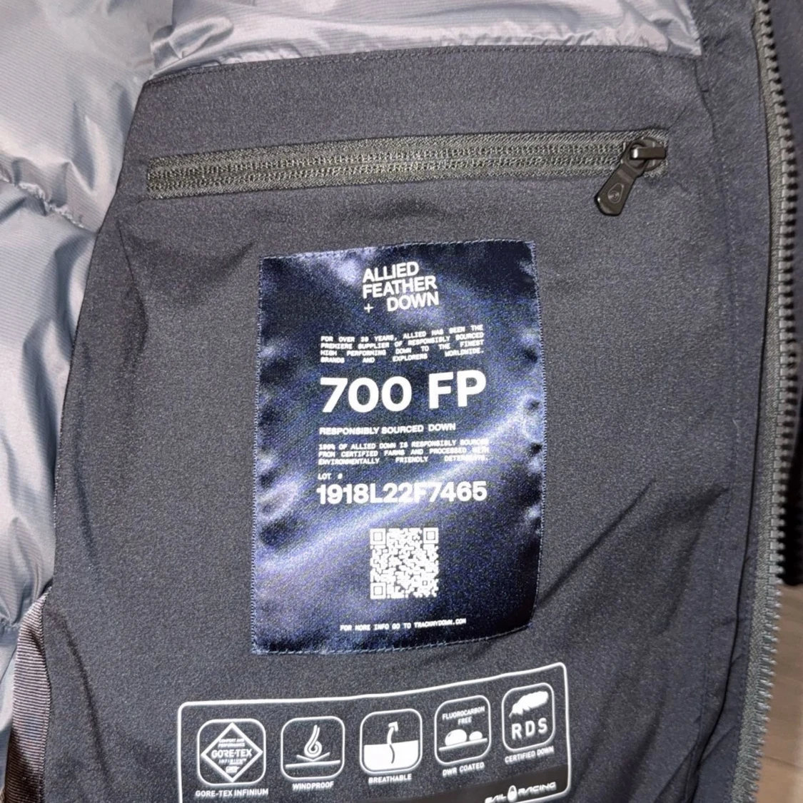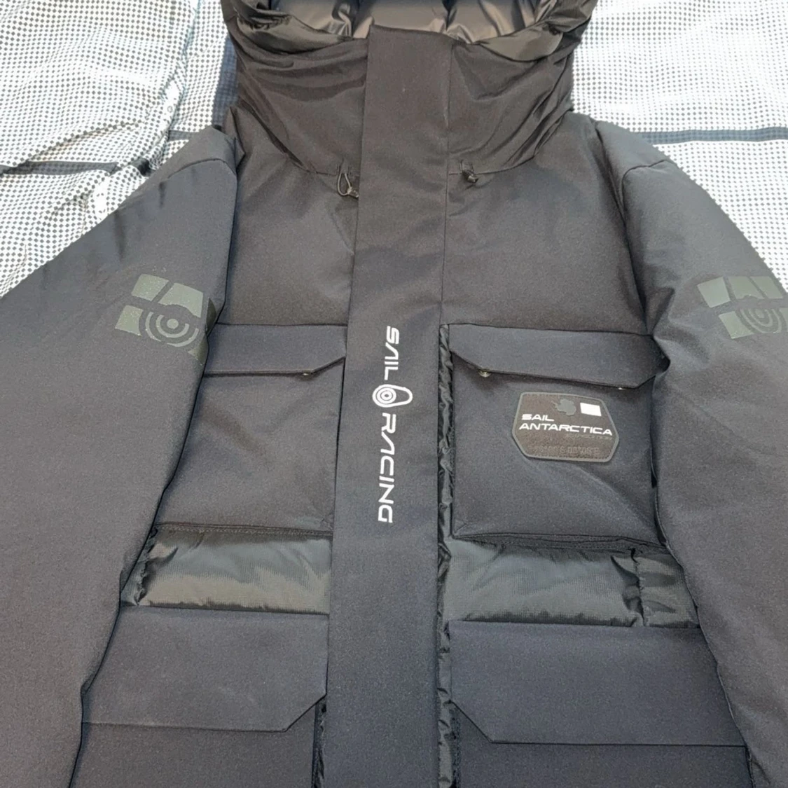 Grym svart dunjacka från Sail Racing med Gore-Tex Infinium, stora fickor och huva med logga. Jackan har quiltad baksida, 700 fill power dun och coola detaljer som Sail Antarctica-märke och dragkedja. Perfekt för kalla vinterdagar och riktigt snygg streetstil. Priset kan diskuteras. Nytt pris 6400