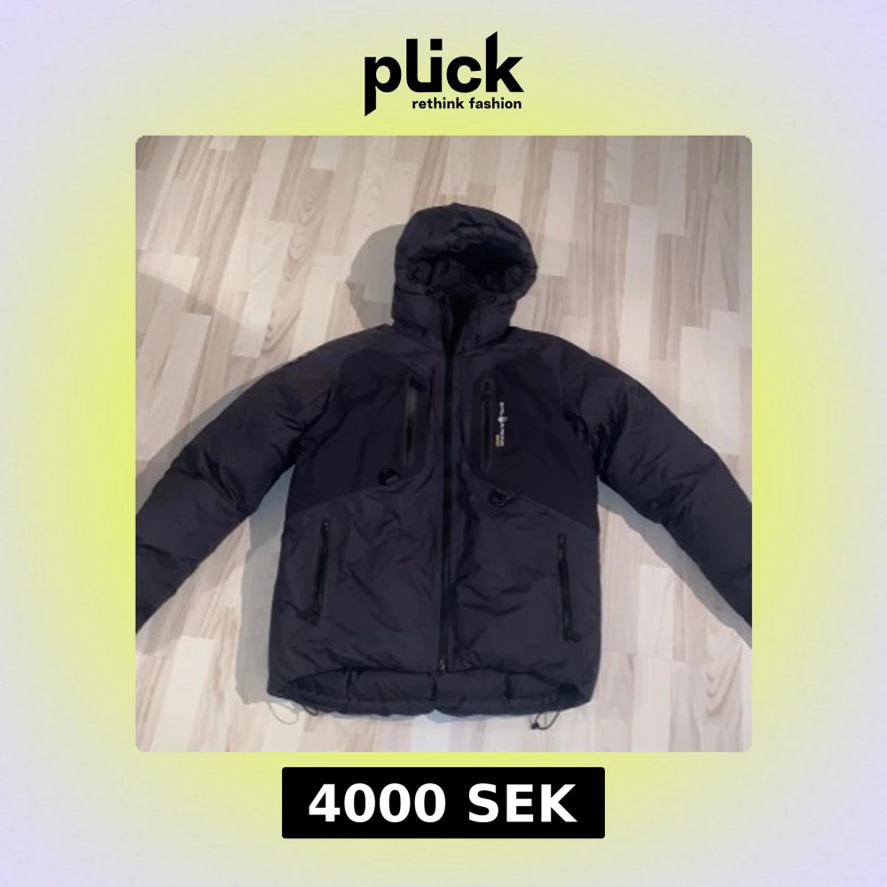 Säljer en svart dunjacka från Sail Racing med GORE-TEX-material. Jackan har en justerbar huva och flera praktiska dragkedjefickor. Perfekt för kalla äventyr med sin robusta design och varma fyllning. Den har en snygg patch med 'Antarctica Expedition' på ärmen. Nypris ca 9000kr