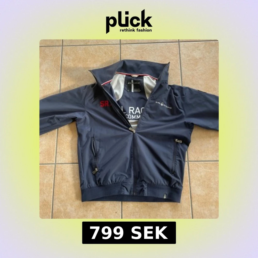 Snygg marinblå vindjacka från Sail Racing med broderade detaljer och amerikansk flagga på ryggen. Har en dragkedja framtill och två fickor med dragkedja. Perfekt till hösten men funkar även på vintern. Inga skador eller sådant på den.