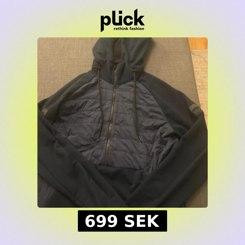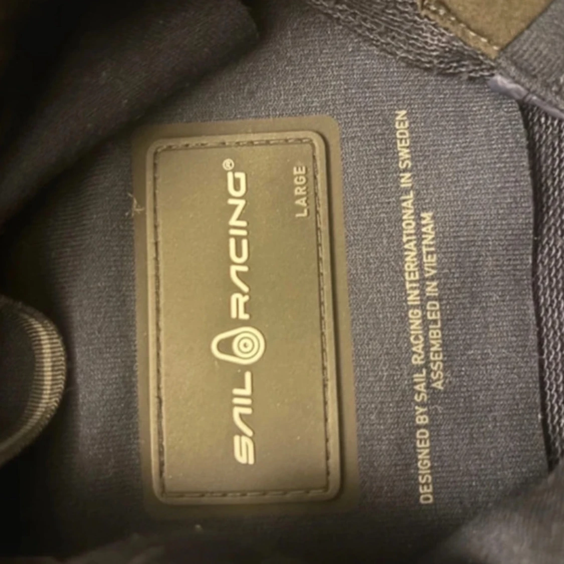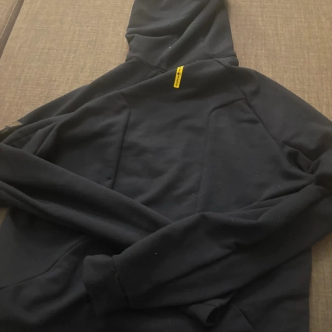 Snygg svart cardigan från Sail Racing med dragkedja och huva. Framsidan har ett quiltat mönster och det finns en liten gul detalj på baksidan. Perfekt för en sportig look.