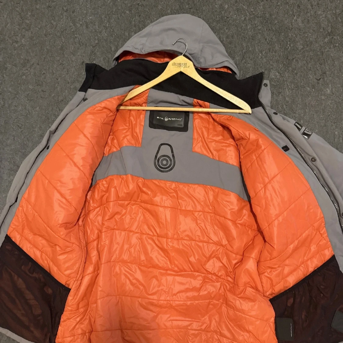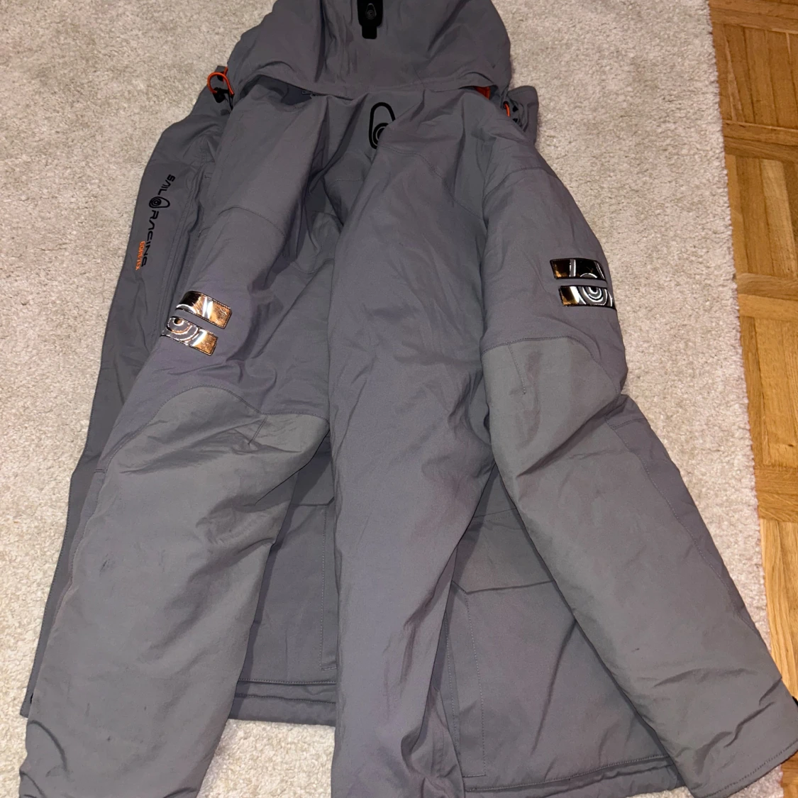 Snygg och varm Sail Racing-jacka i toppskick, använd endast en vinter. Inga skador eller fläckar – riktigt fräsch! Flera fickor, rejäla dragkedjor och snygga logotyper på ärmar och bröst. Insidan är orange och jackan håller värmen perfekt. Nypris ca 8000 kr – nu endast 2250 kr! Unik modell som inte längre finns att köpa! Jackan är stor i storleken alltså large passar även xl