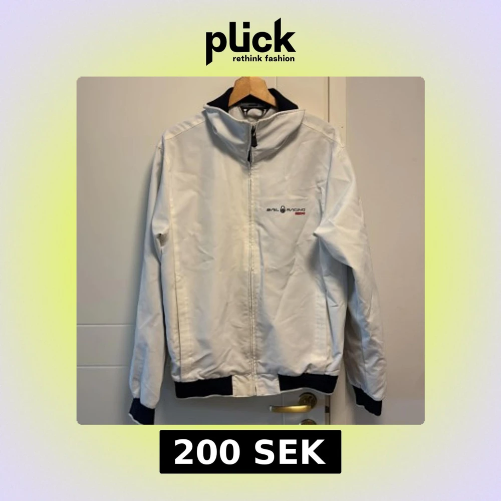 Säljer en stilren vit jacka från Sail Racing med dragkedja och broderad logga på bröstet. Jackan har långa ärmar och ribbade muddar i svart vid ärmslut och nederkant. Perfekt för en sportig look!