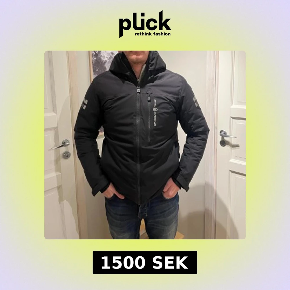 Svart pufferjacka från Sail Racing med stor huva och logga på bröstet och ärmarna. Jackan har dragkedja framtill och en bröstficka med dragkedja. Perfekt för kalla dagar. Använd sparsamt och i gott skick. Pris kan diskuteras vid snabb affär.