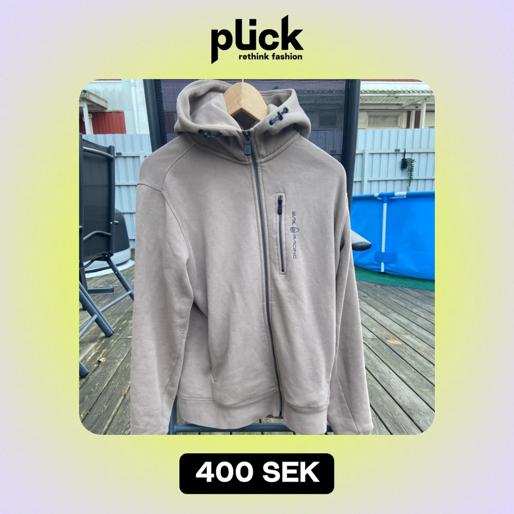 Säljer en snygg beige hoodie från Sail Racing i bra skick. Den har en dragkedja framtill och en praktisk bröstficka med dragkedja. Perfekt för höst och vår, med en skön huva och långa ärmar. Passar både till vardags och lite mer avslappnade tillfällen. Knappt använd och priset ej hugget i sten