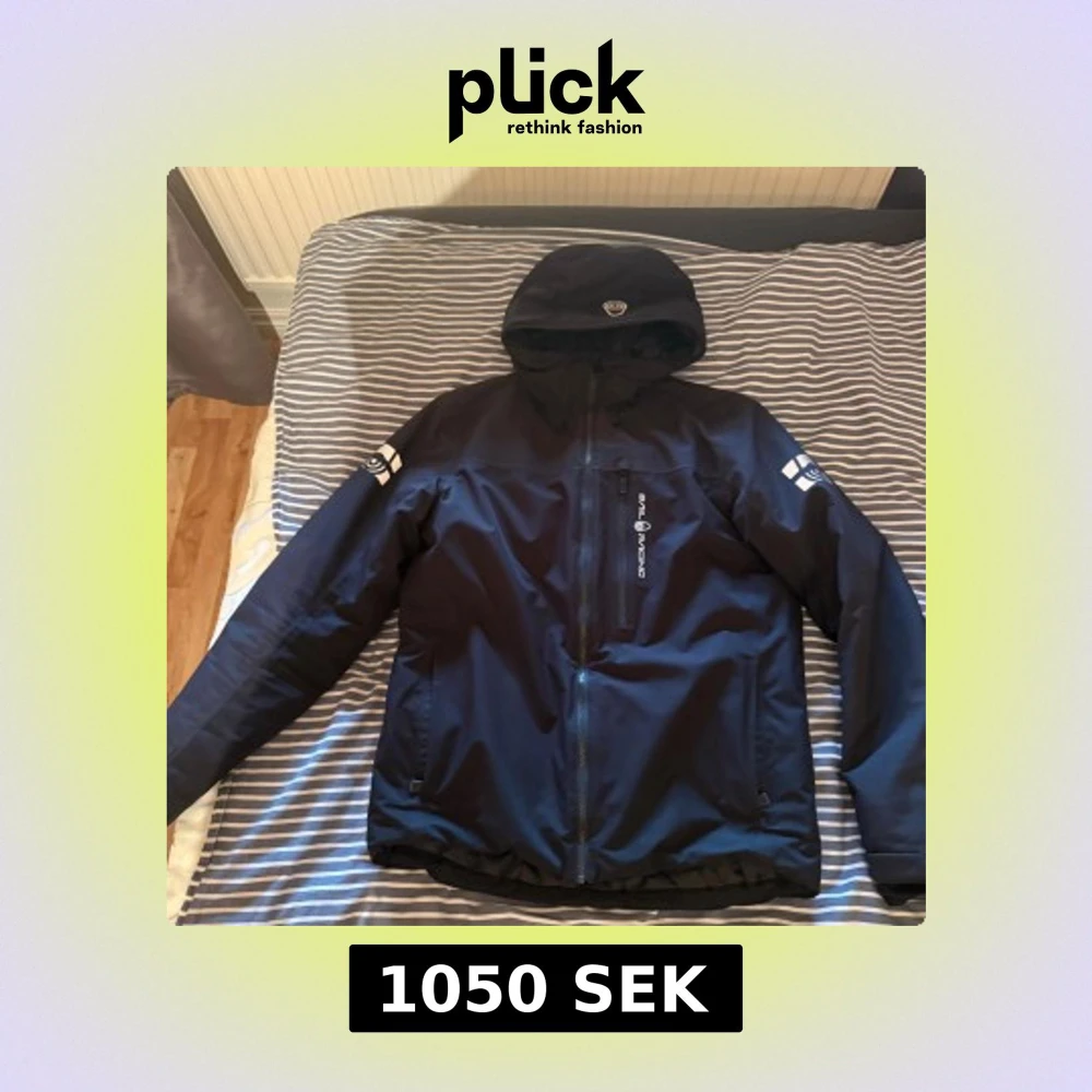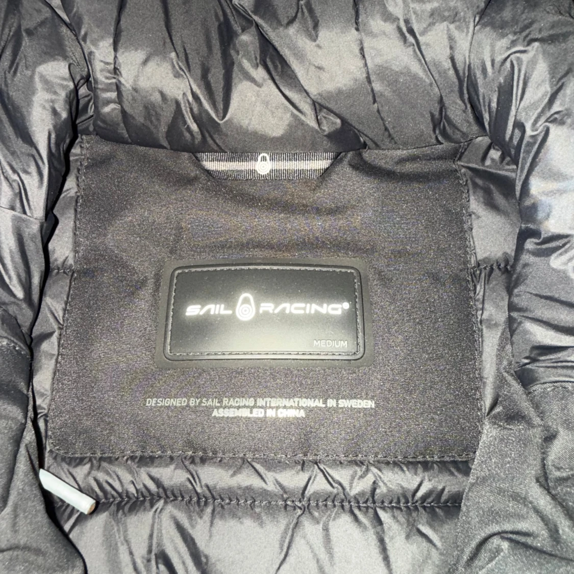Säljer en svart vinter jacka från Sail Racing med huva och snygga loggor på ärmarna. Jackan har dragkedja framtill och en bröstficka med Sail Racing-tryck. Perfekt för blåsiga dagar och stilren look.