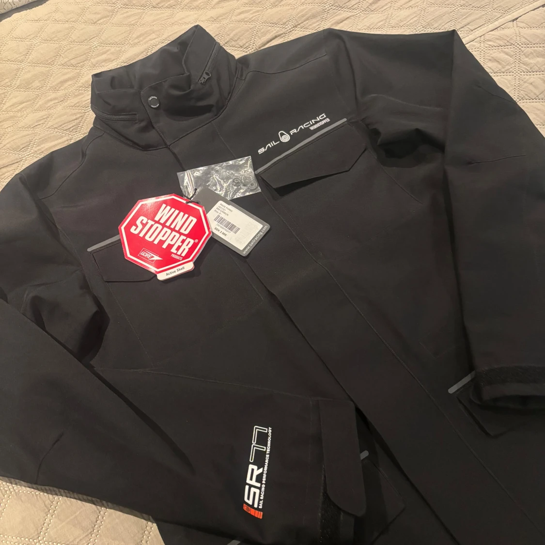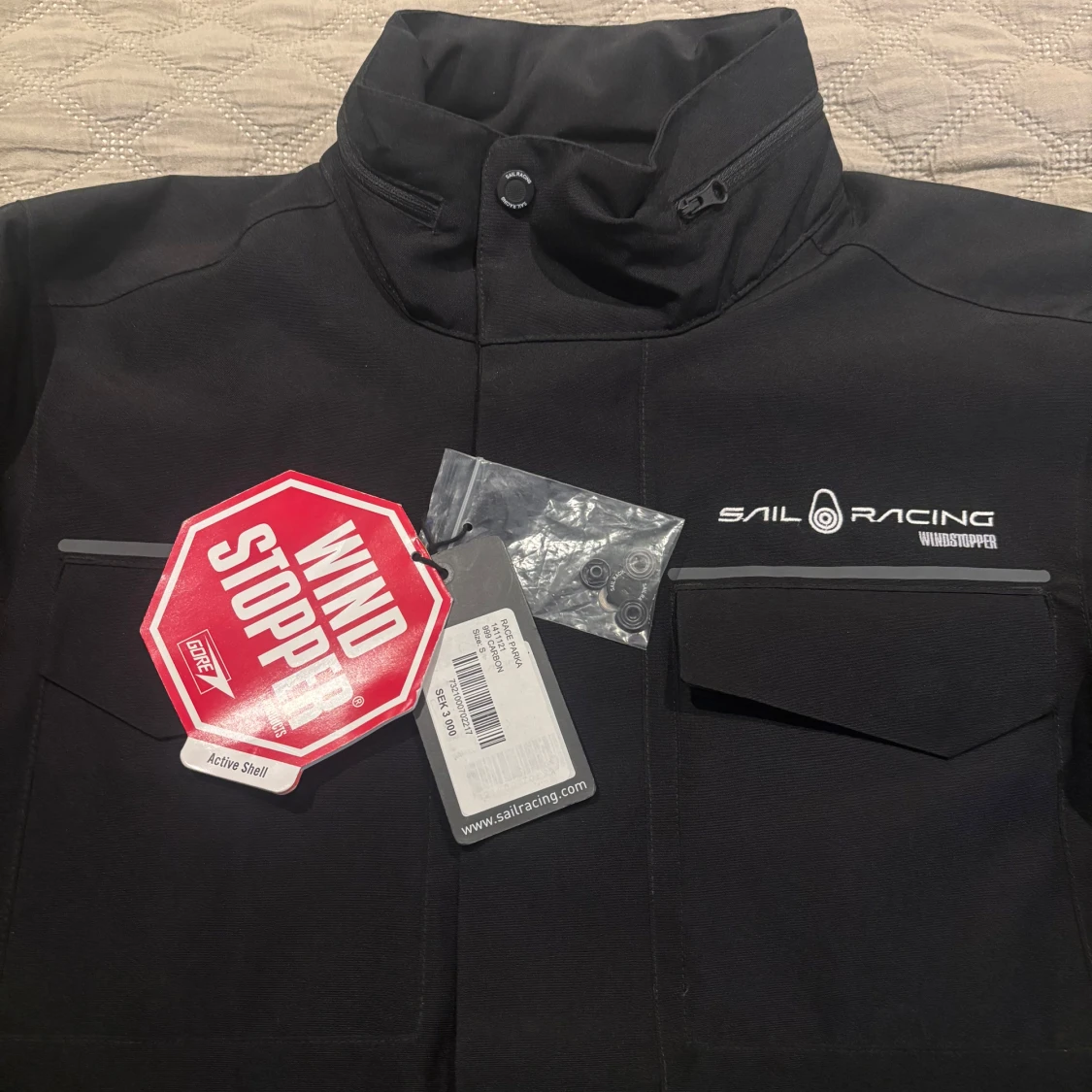 Säljer en svart jacka från Sail Racing med Windstopper-teknologi. Jackan har en hög krage och flera fickor med lock. Perfekt för blåsiga dagar. Märket SR-71 syns på ärmen.