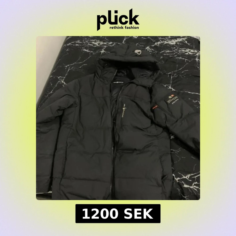 Svart dunjacka från Sail Racing med huva och dragkedja. Jackan har logga på bröstet och ärmen, samt detaljer som broderad symbol på huvan. Perfekt för kalla dagar med sin puffiga design och sportiga look.