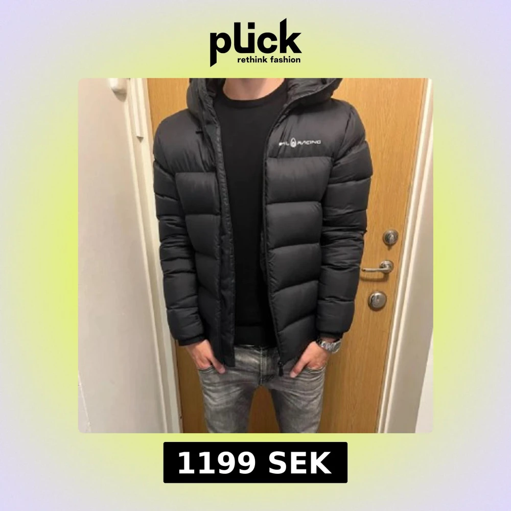 Säljer en svart pufferjacka från Sail Racing med huva och diskret logga på bröstet. Jackan har en klassisk quiltad look, dragkedja framtill och är perfekt för kyliga dagar. Passformen är normal och jackan är riktigt skön att bära.