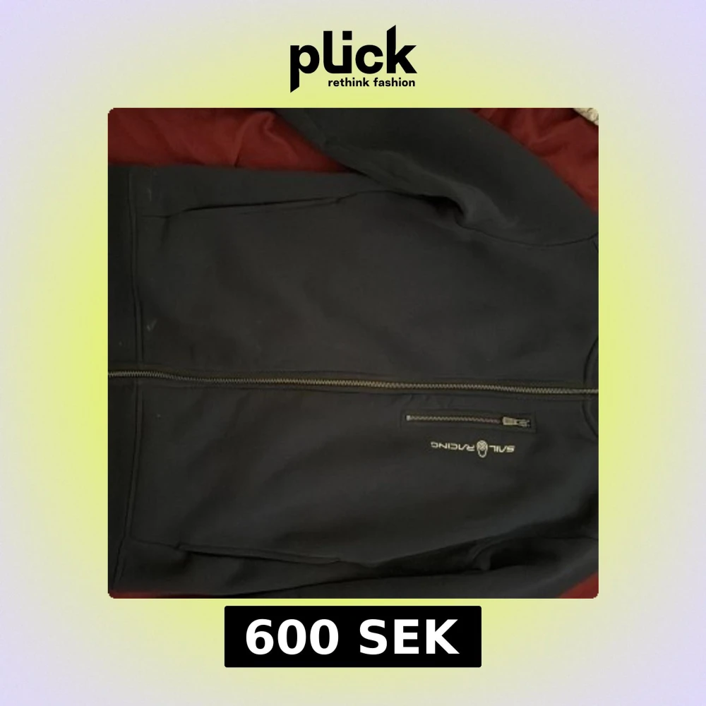Säljer en svart jacka från Sail Racing med dragkedja och en bröstficka. Jackan har långa ärmar och en stilren design. Perfekt för en sportig look.175-183