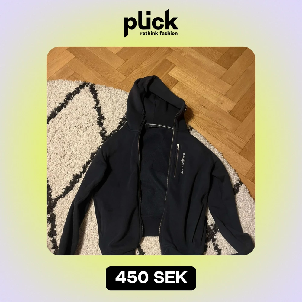 Säljer en mörkblå zip up hoodie. Storlek s. Har använt de men är fortfarande i bra skick. Inte trasigt på något ställe. Köpte de för 999