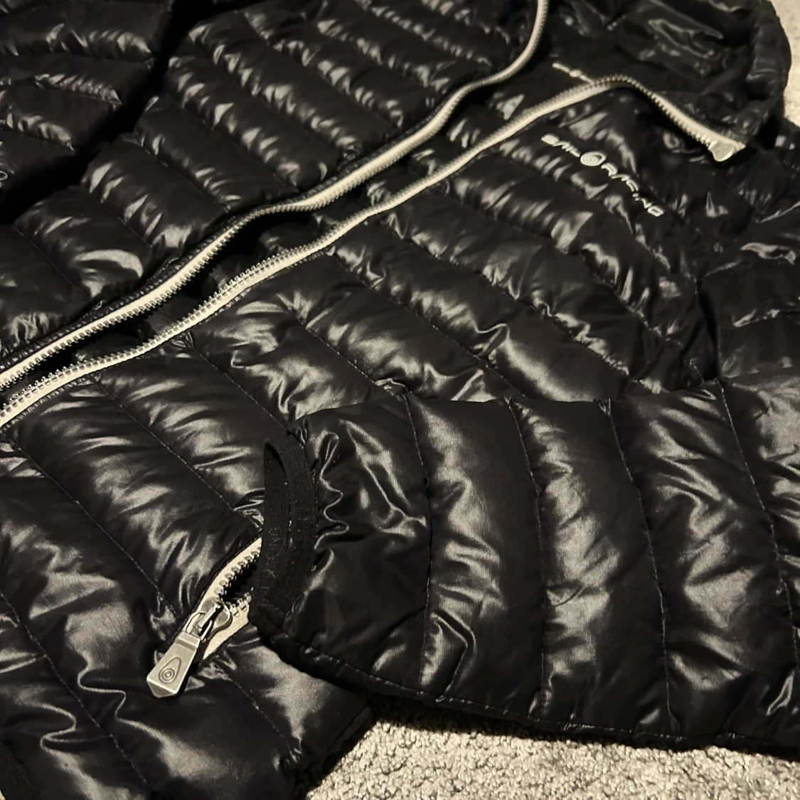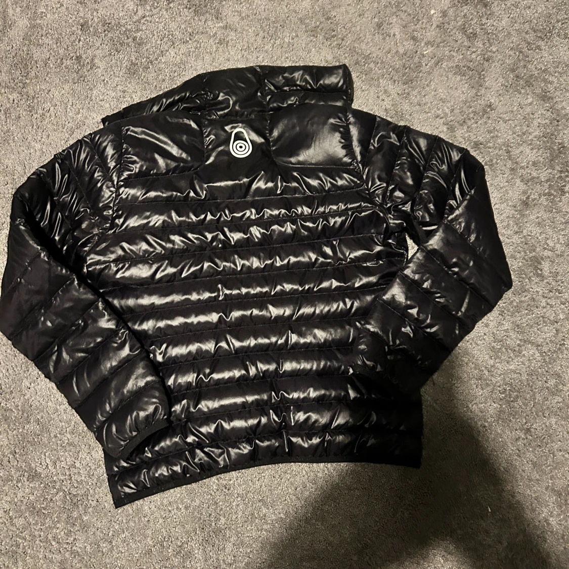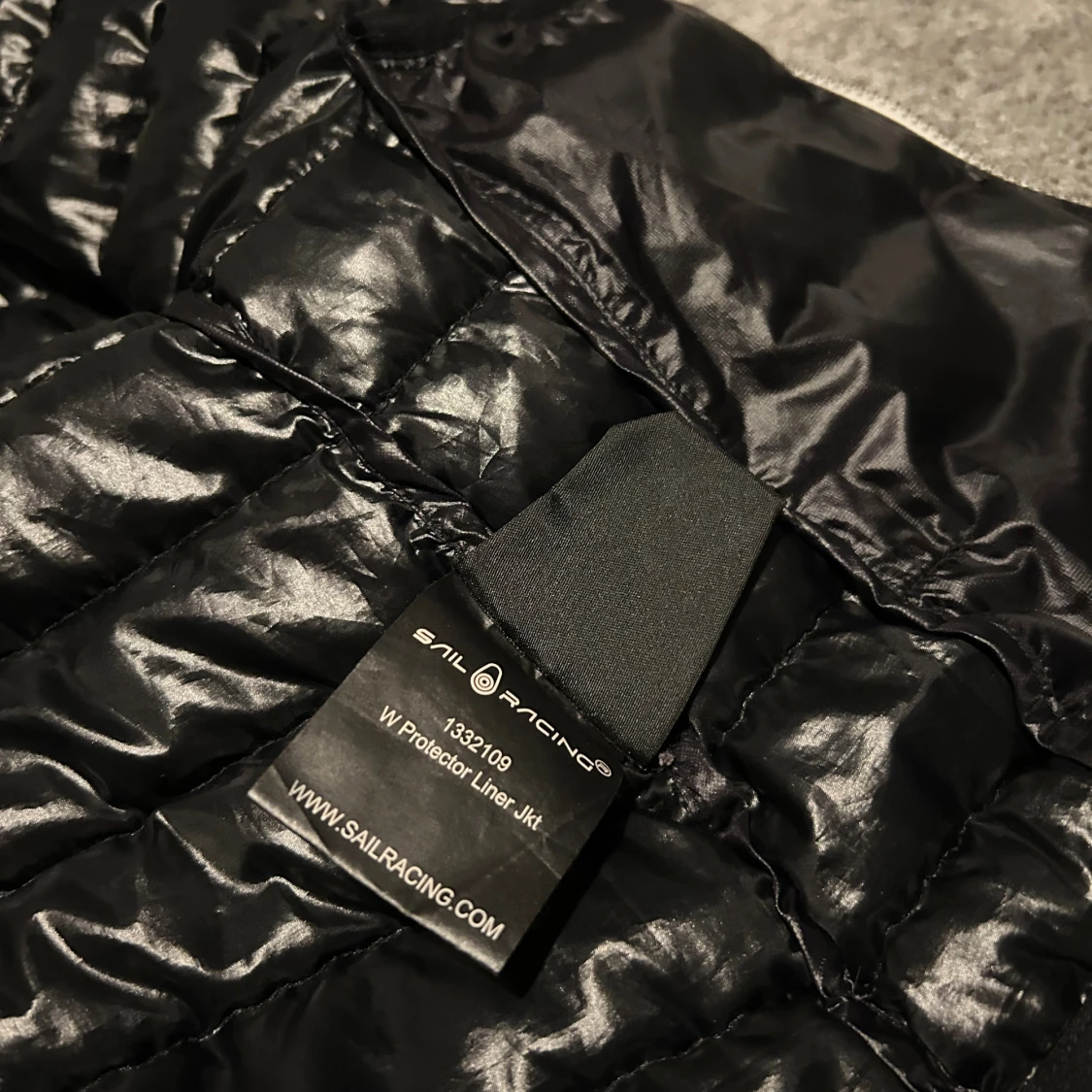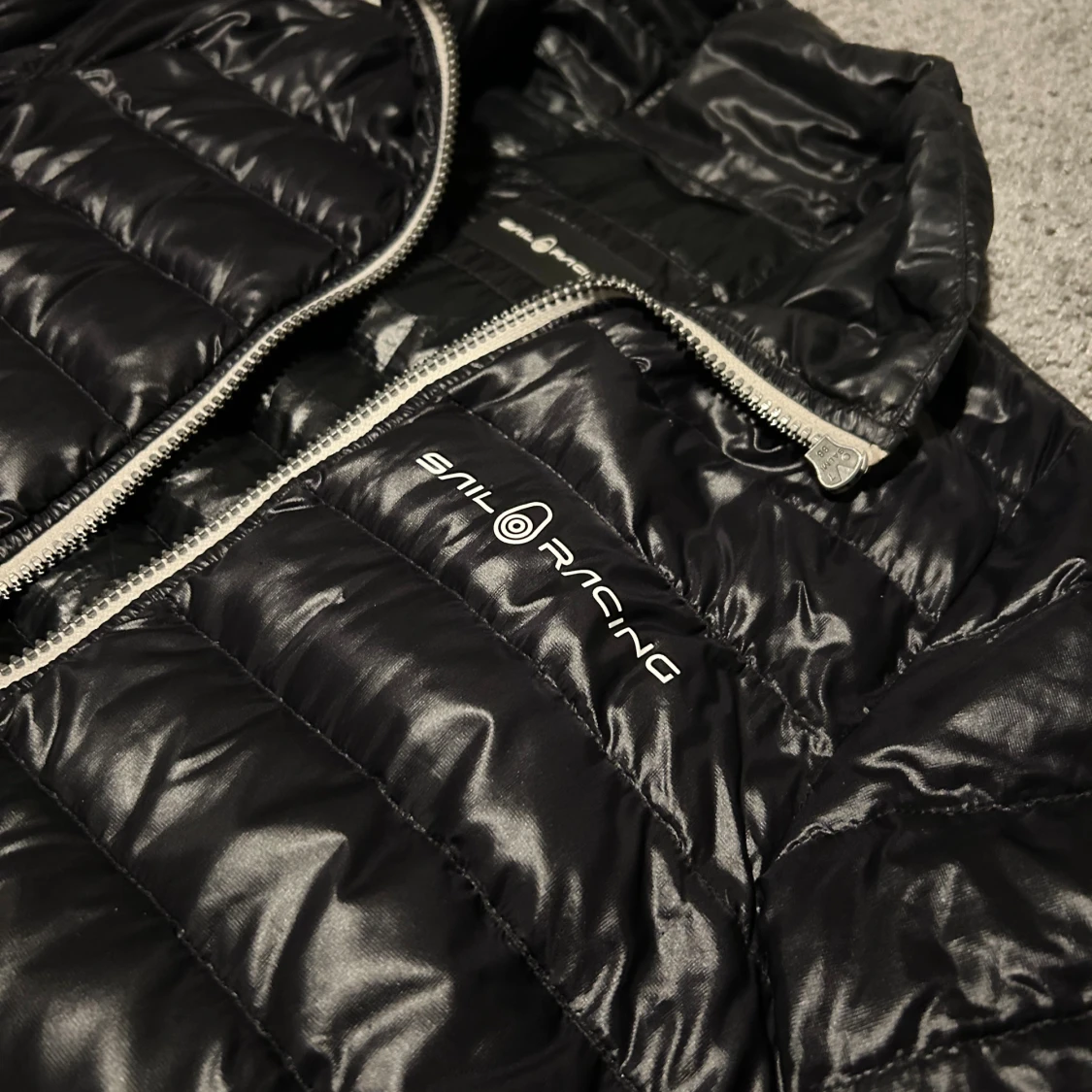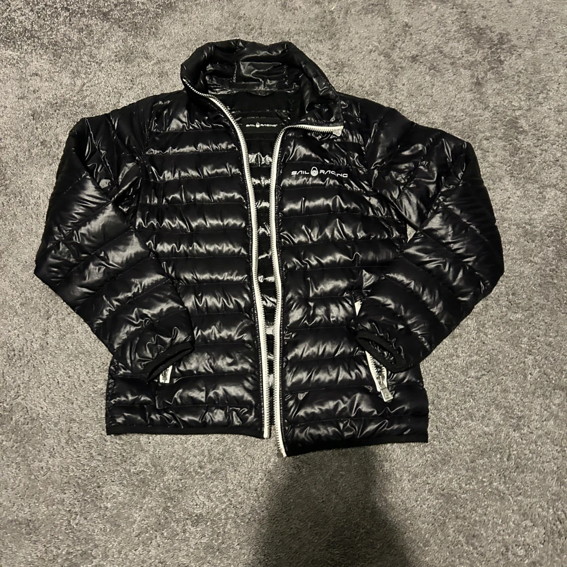 Bra skick förutom att dragkedjan har problem och funkar inte så bra men säkert lätt att fixa Svart pufferjacka från Sail Racing med blank finish och horisontella quiltade sömmar. Jackan har dragkedja framtill, hög krage och logga på bröstet. Perfekt för kyliga dagar och har en sportig vibe.