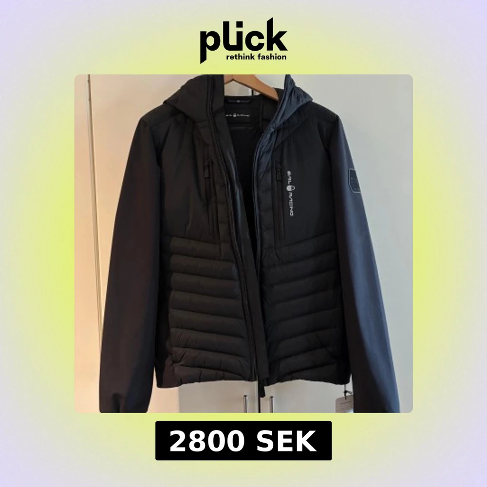 Snygg svart hybridjacka från Sail Racing med dragkedja och huva. Jackan har en modern design med quiltade detaljer på sidorna och en logotyp på bröstet. Perfekt för kyliga dagar.