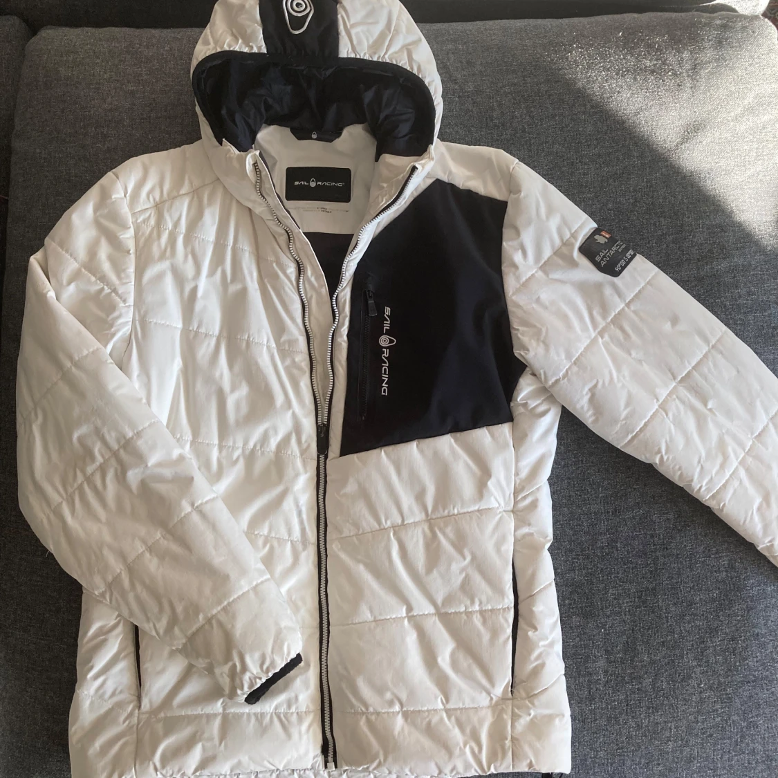Säljer min gamla Sail racing jacka då jag köpt en ny och denna inte kommer till användning något mer. Jackar har presis kemtvättats så den är väldigt fräsch! Jackan är i gott skick, inga problem med dragkedjorna eller hål på den.