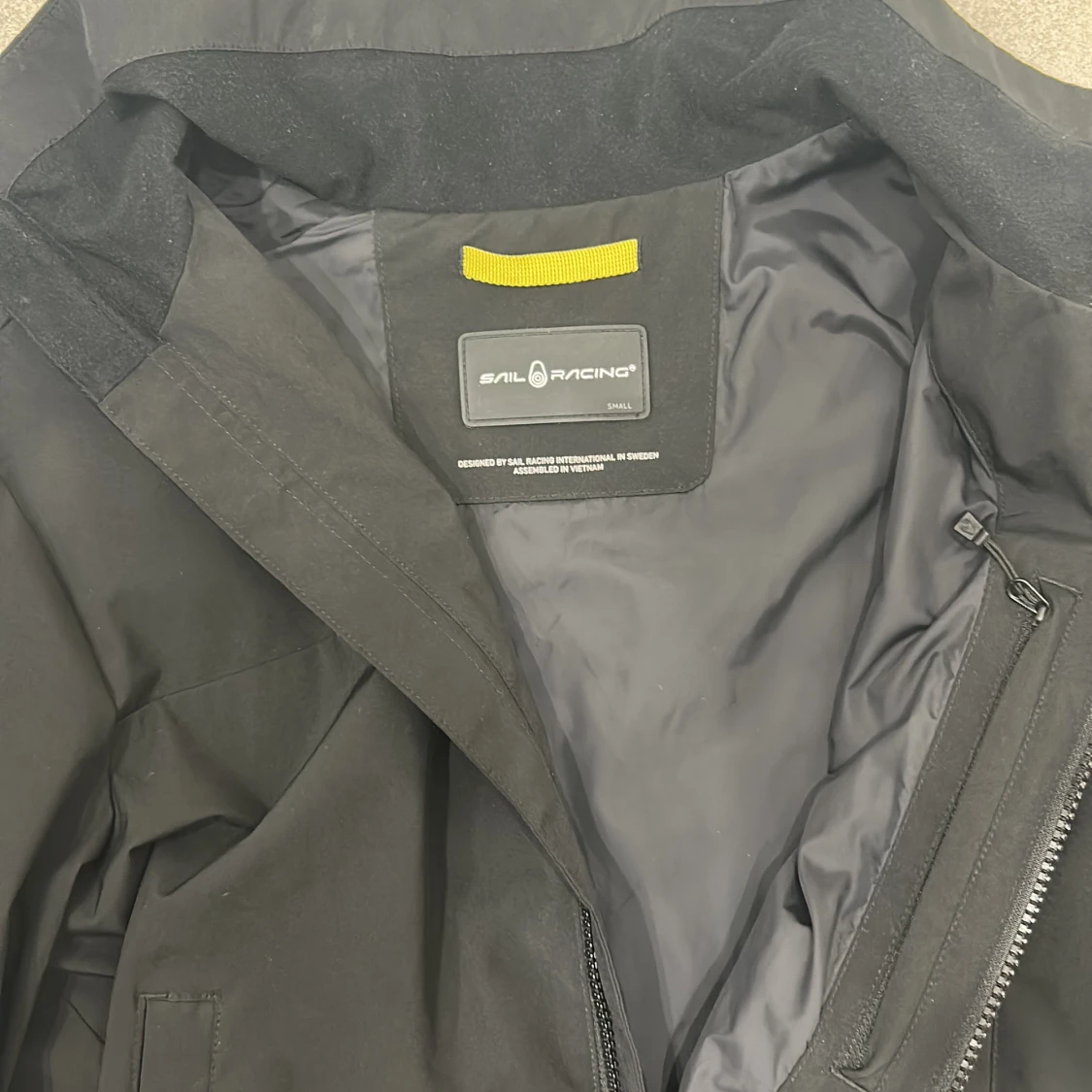Svart vindjacka från Sail Racing med hög krage och hel dragkedja framtill. Jackan har två sidofickor med dragkedja, ribbade muddar och logga på bröstet samt ryggen. Tillverkad i polyester och har en clean, sportig look.