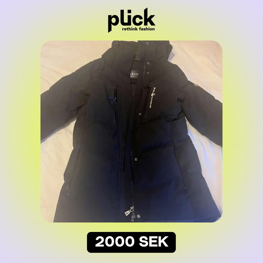 Säljer en svart dunjacka från Sail Racing med huva och dragkedja. Jackan är vindtät och andas, med DWR-behandling och RDS-certifierat dun. Håller än varm hela vinter