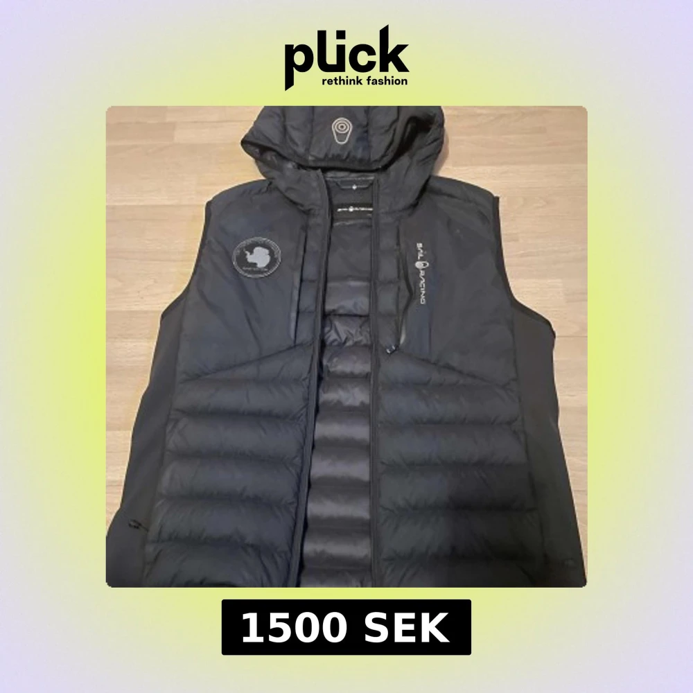 Snygg svart dunväst från Sail Racing med dragkedja och huva. Västen har en stilren design med logotypdetaljer på bröstet och huvan. Perfekt för kyligare dagar. Använd i ungefär ett år. Finns inga fel. Nypris ca. 2000
