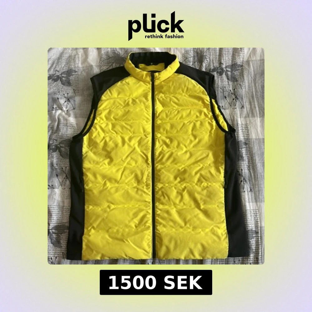 Snygg gul och svart väst med dragkedja framtill. Perfekt för en sportig look eller som ett extra lager under kyliga dagar. Västen har en modern design med kontrasterande svarta paneler på sidorna.