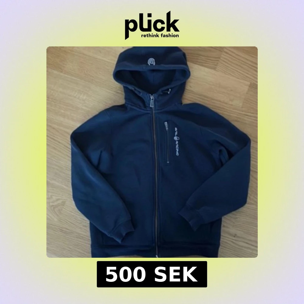 Säljer en mörkblå hoodie från Sparco med dragkedja och huva. Den har en broderad logga på bröstet och en praktisk ficka med dragkedja. Perfekt för en sportig look!