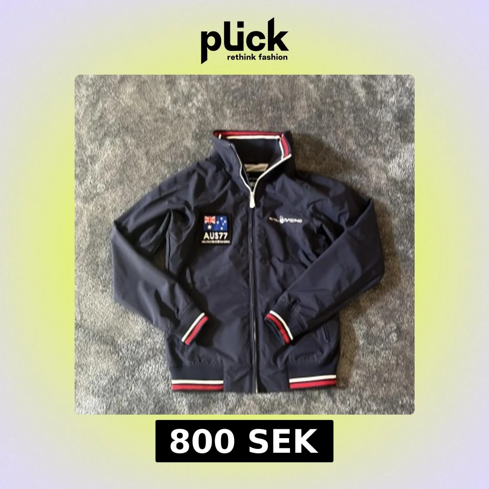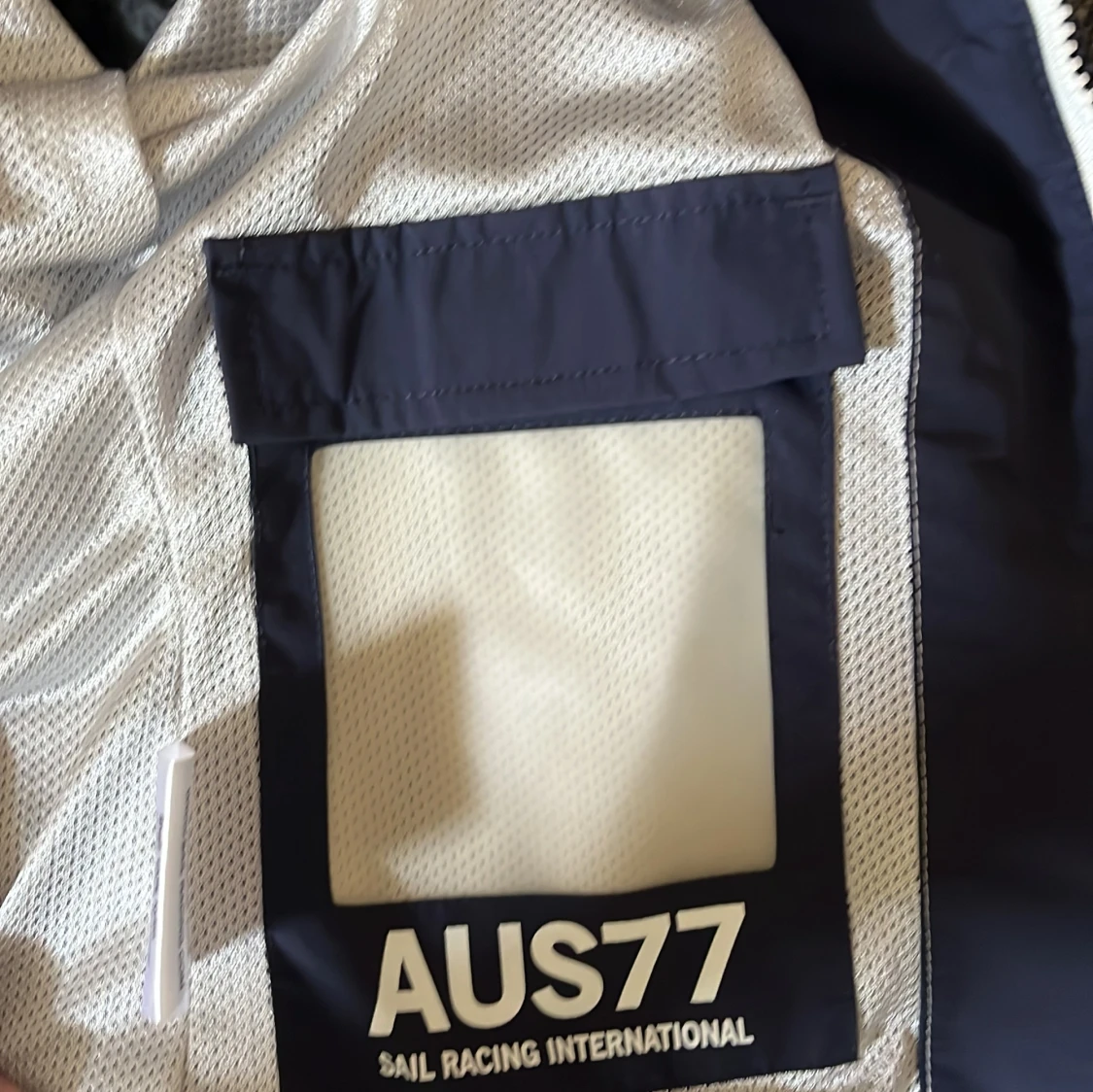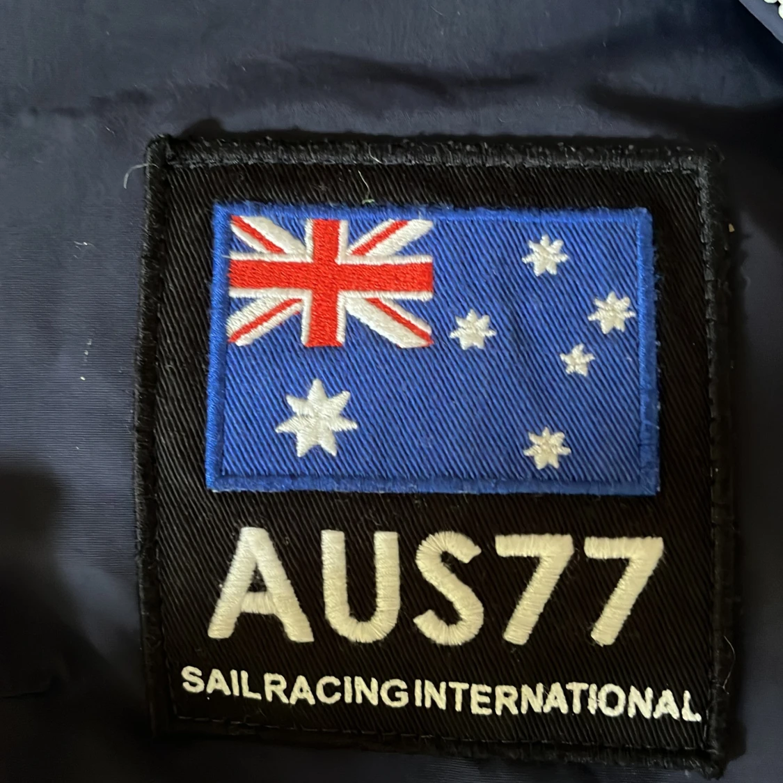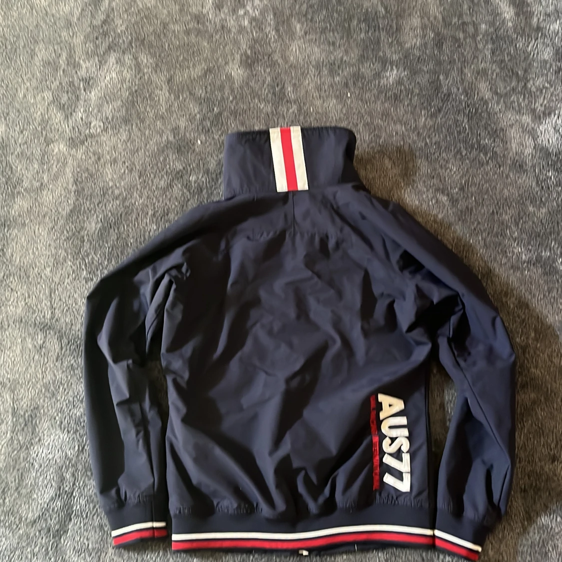 Sällsynt och snygg marinblå jacka från Sail Racing med broderad australiensisk flagga och texten "AUS77". Jackan har dragkedja och ribbade muddar med röd, vit och blå rand. Perfekt för en sportig look! Priset är självklart förhandlingsbart. 😊 Tveka inte att höra av dig! 🫡