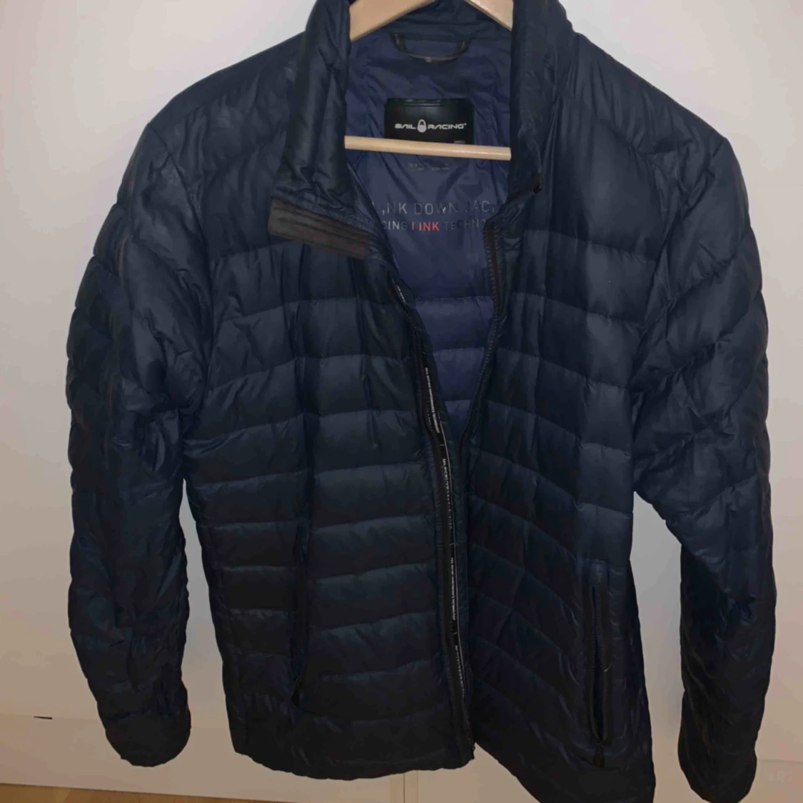 Sail racing jacka köpt för ett år sedan har använts ganska mycket den e lite sliten texten har gått bort på både baksida och framsida