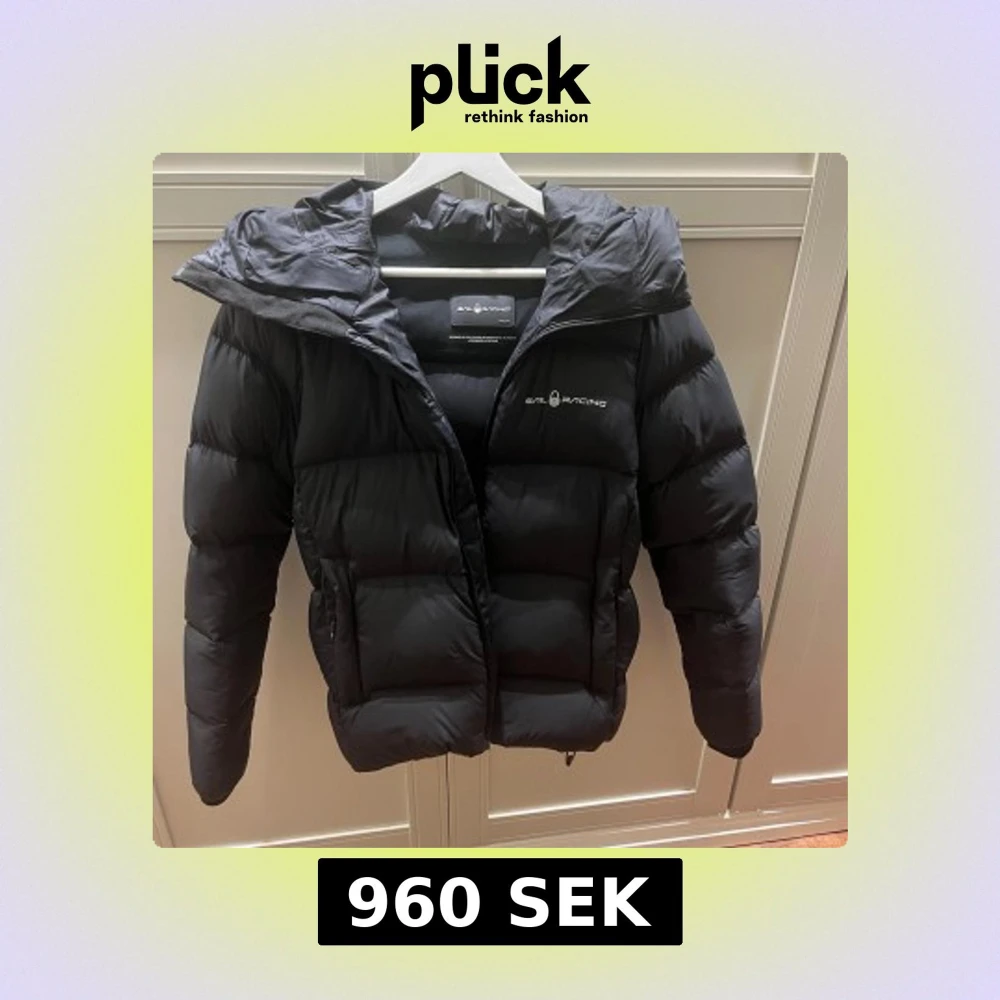 Svart pufferjacka från Sail Racing i storlek M. Jackan har en fyllig dunstoppning (700 fill power), huva och dragkedja framtill. Den är i väldigt bra skick då den knappt är använd!