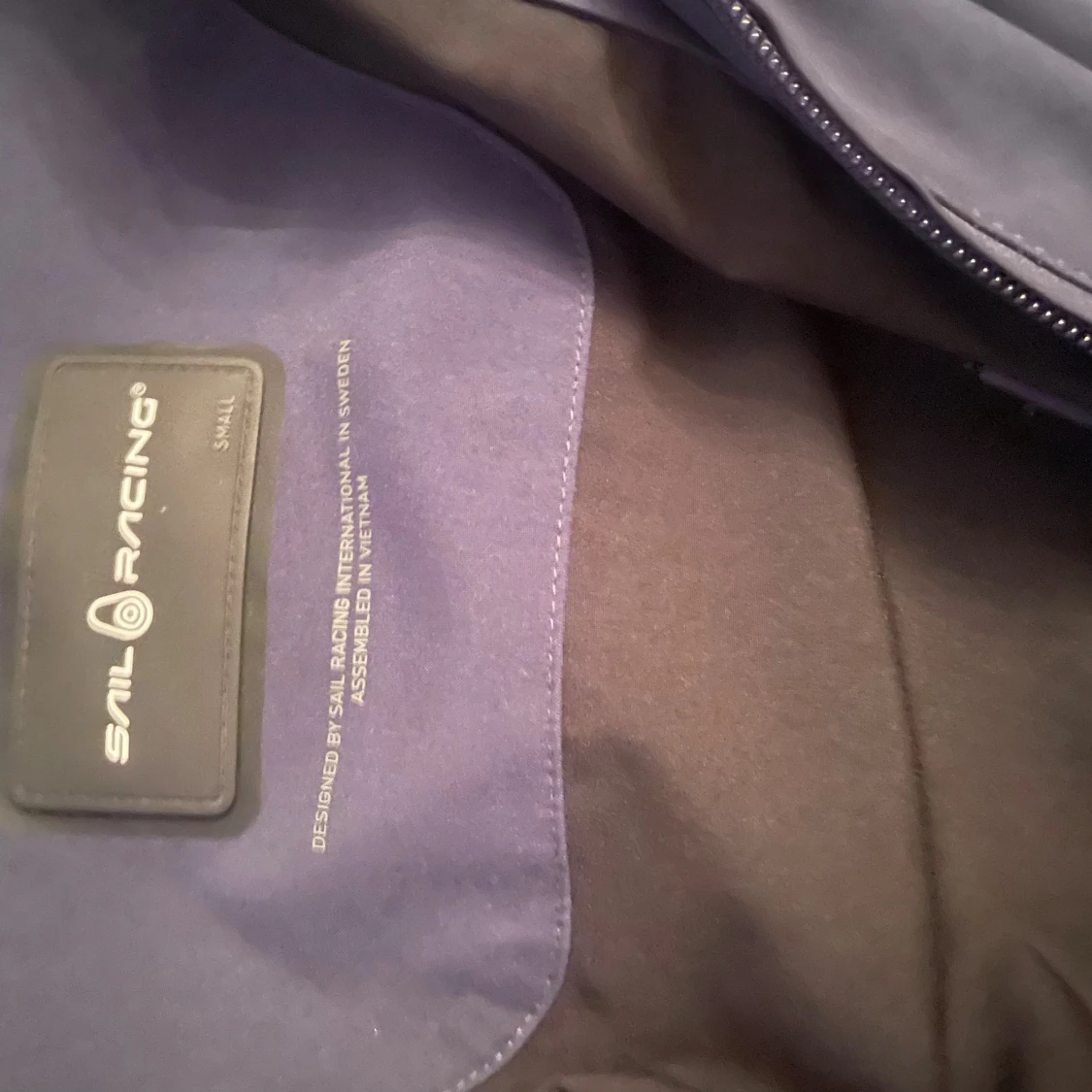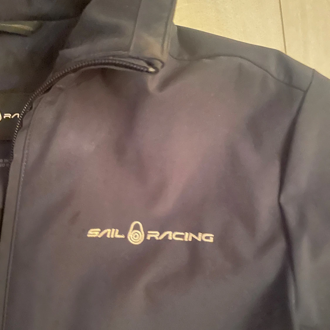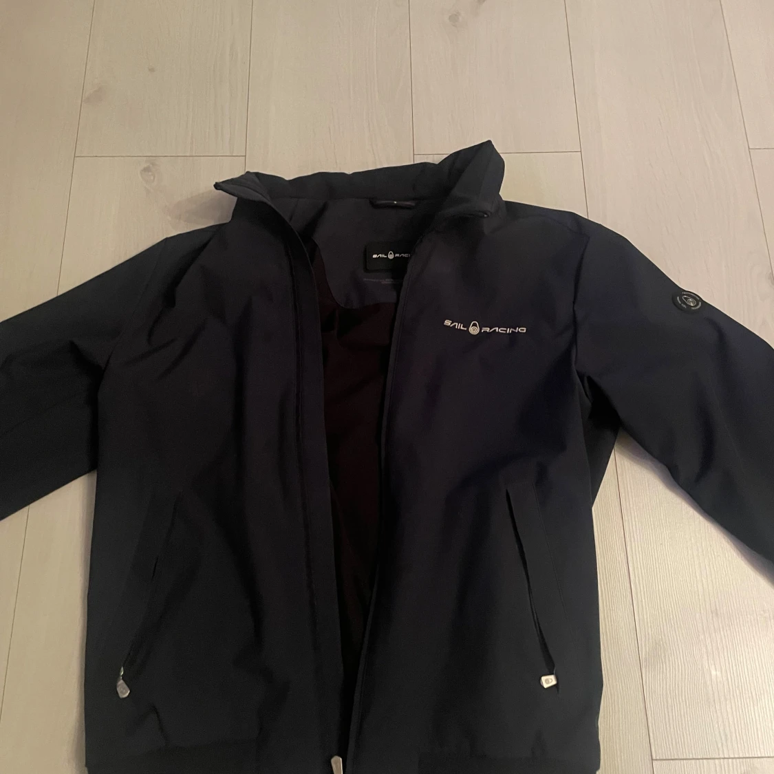 Snygg marinblå vindjacka från Sail Racing med dragkedja framtill och två fickor med dragkedja. Jackan har hög krage och diskret logga på bröstet samt en rund Sail Racing-patch på ärmen. Perfekt för blåsiga dagar och stilren look.