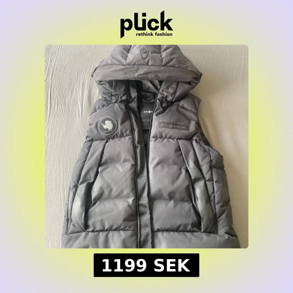 Säljer en grå dunväst från Sail Racing med huva och dragkedja. Västen har två stora fickor framtill och en snygg logotyp på bröstet. Perfekt för lager-på-lager och stilren look.