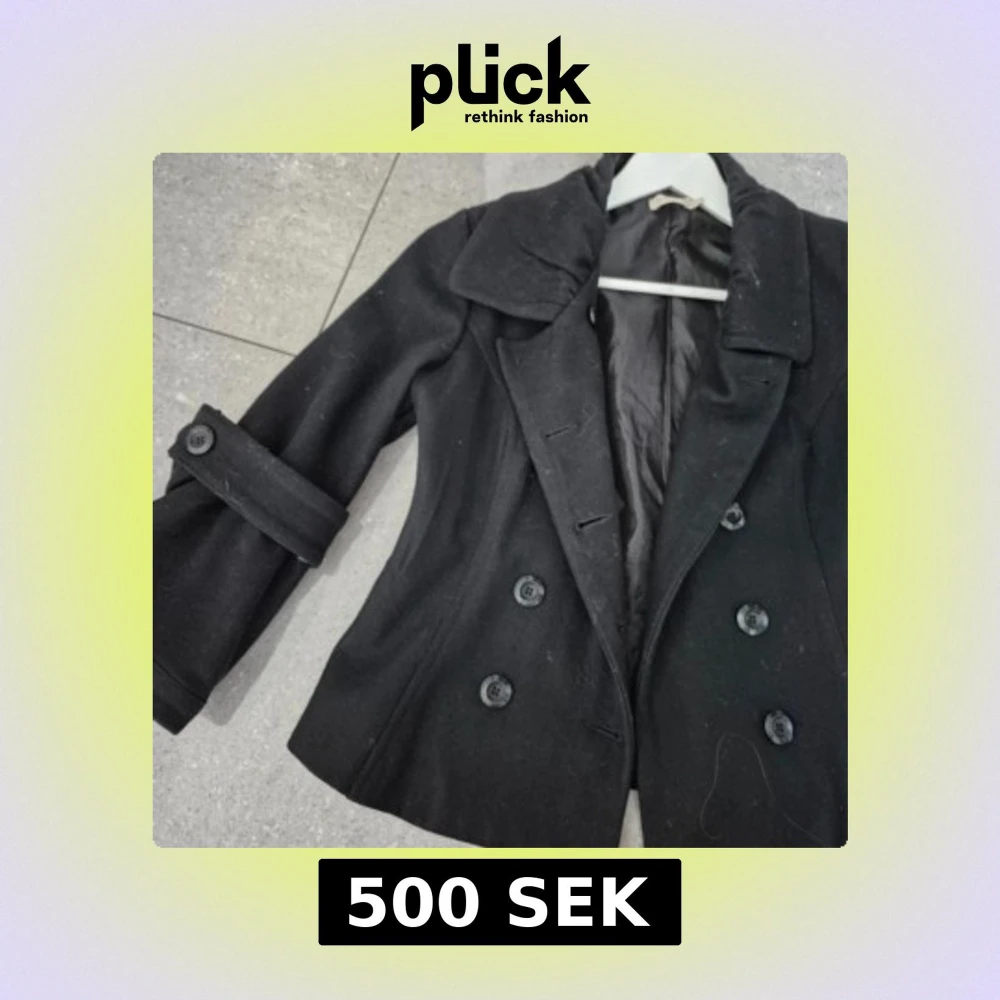 OBS, STÅR FEL STORLEK, JAG KAN HA DEN SOM VANLIGSTVIS HQR ST S OCH XS. Stilren svart skepparkavaj med dubbelknäppning och stora ärmar. Perfekt för dig som vill ha en klassisk look med lite edge.