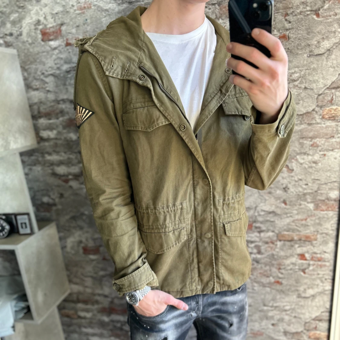 Mycket fint skick, inga defekter. Storlek 48/S passar dig som är mellan 175-185cm ungefär. Nypris ca 15 000kr och mycket ovanlig. Den är självklart äkta, kolla gärna på recensionerna vid osäkerhet🙌Modellen är 185 cm, 79 kg. Skriv för mer information!🤝