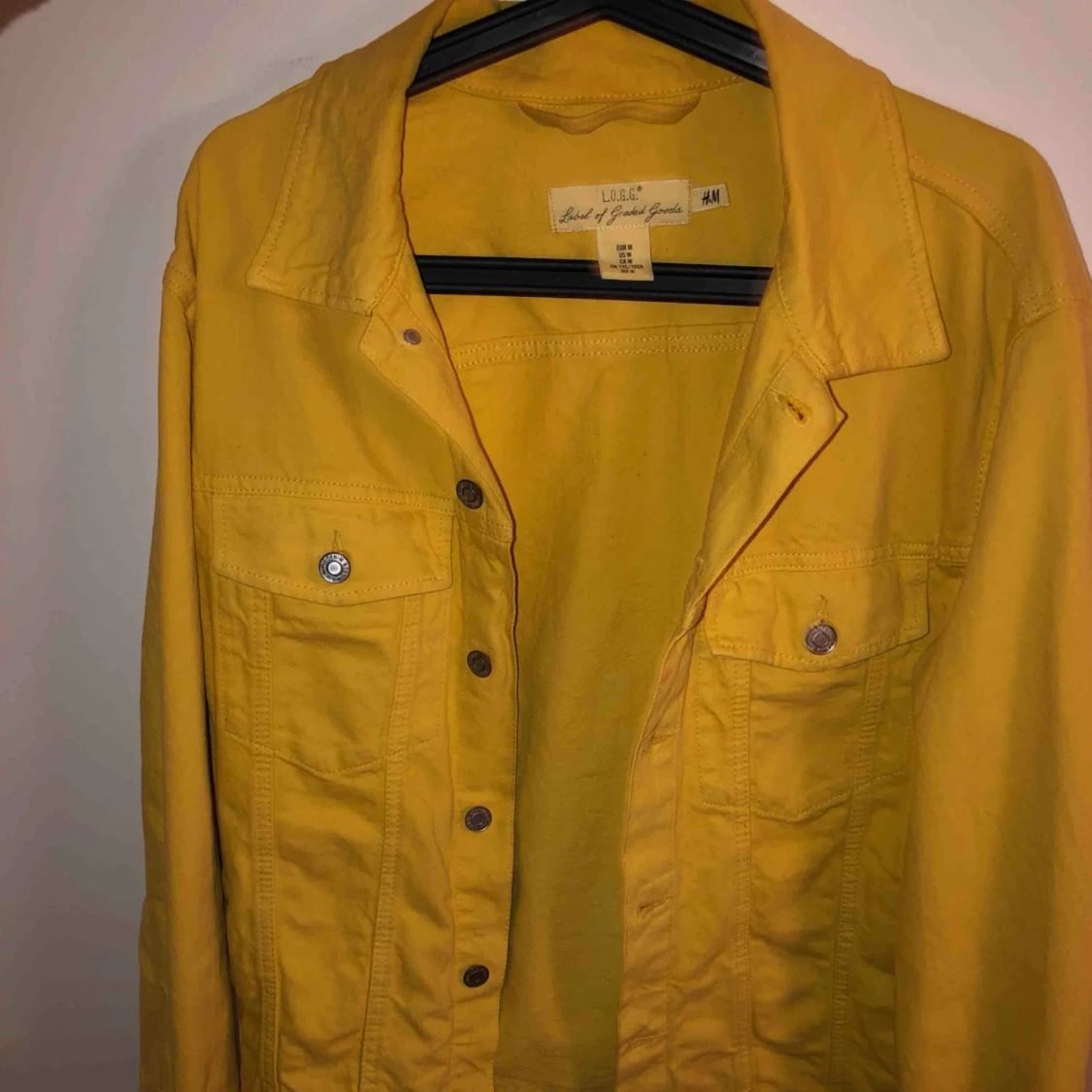 Säljer en jeansjacka från H&m i gult. Säljes för 130 kr + frakt. Oversized i storleken