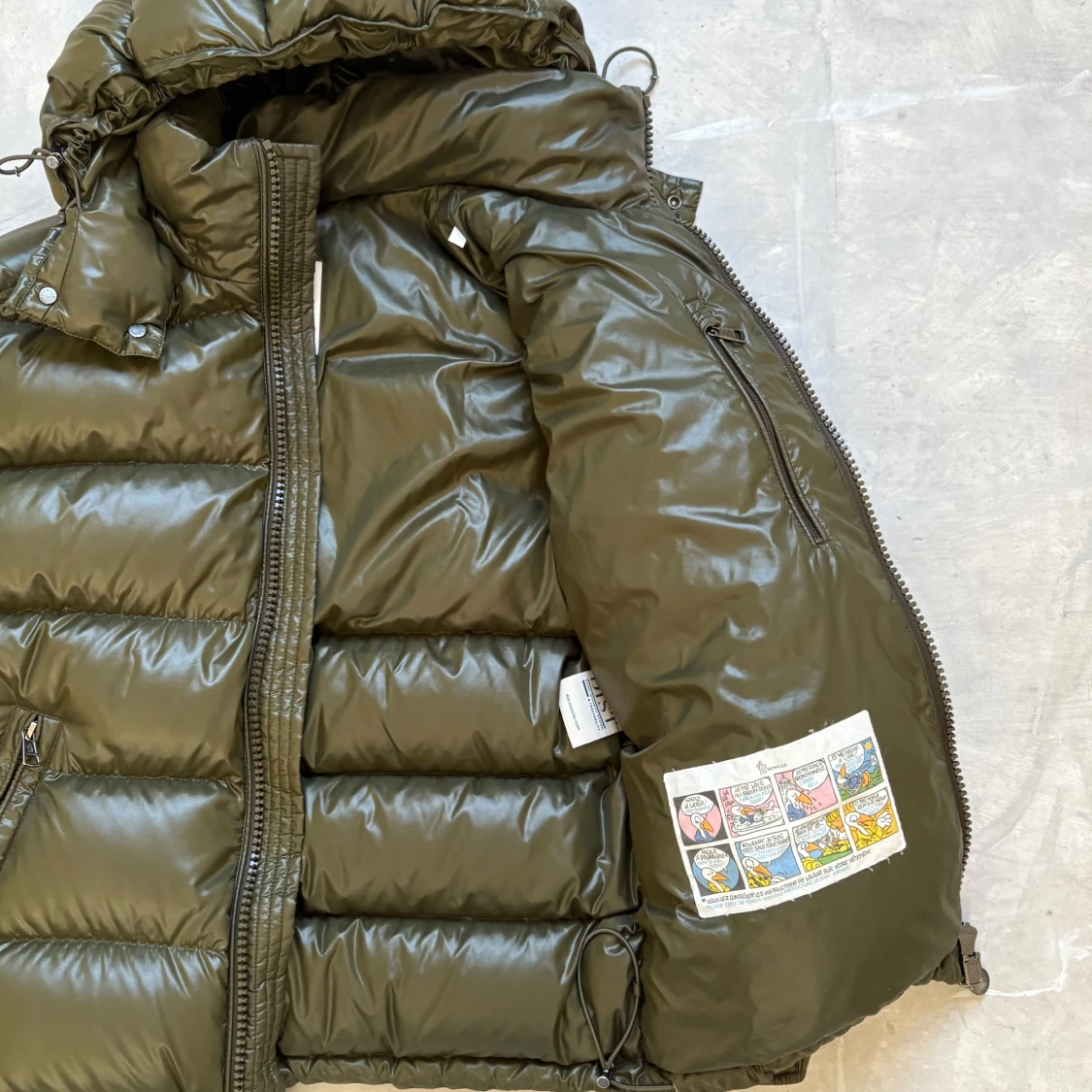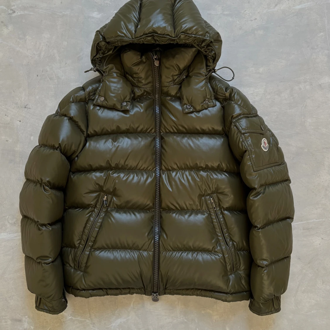 Otroligt sällsynt Moncler maya olivfärgad. Storlek 2 sitter som en S-M. Självklart äkta med kvitto! Flawless utöver en liten fläck, se bild. DM vid intresse!
