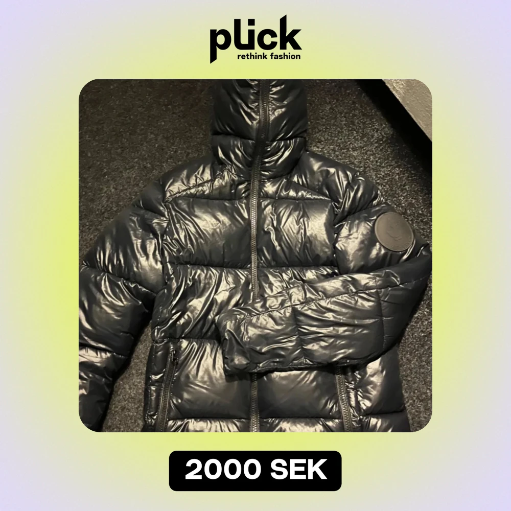 Säljer en snygg svart pufferjacka i mycket bra skick. Jackan har en glansig yta och dragkedja framtill. Perfekt för kalla dagar och håller dig varm och stilren. Passar både till vardags och lite finare tillfällen.