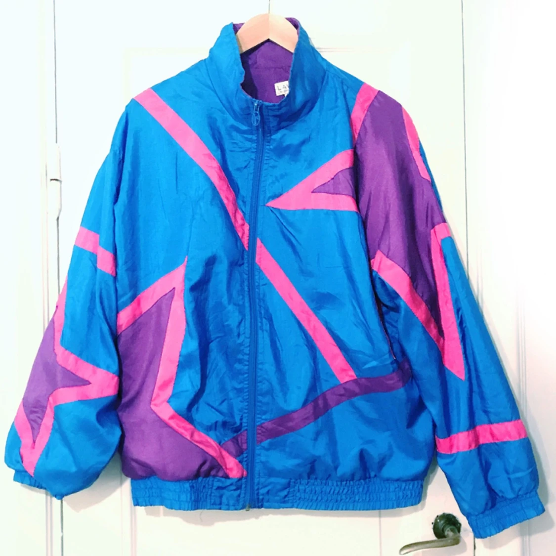 Jacka med mönster i blå, rosa, lila. Sportig och glad! Passar bra på festival.