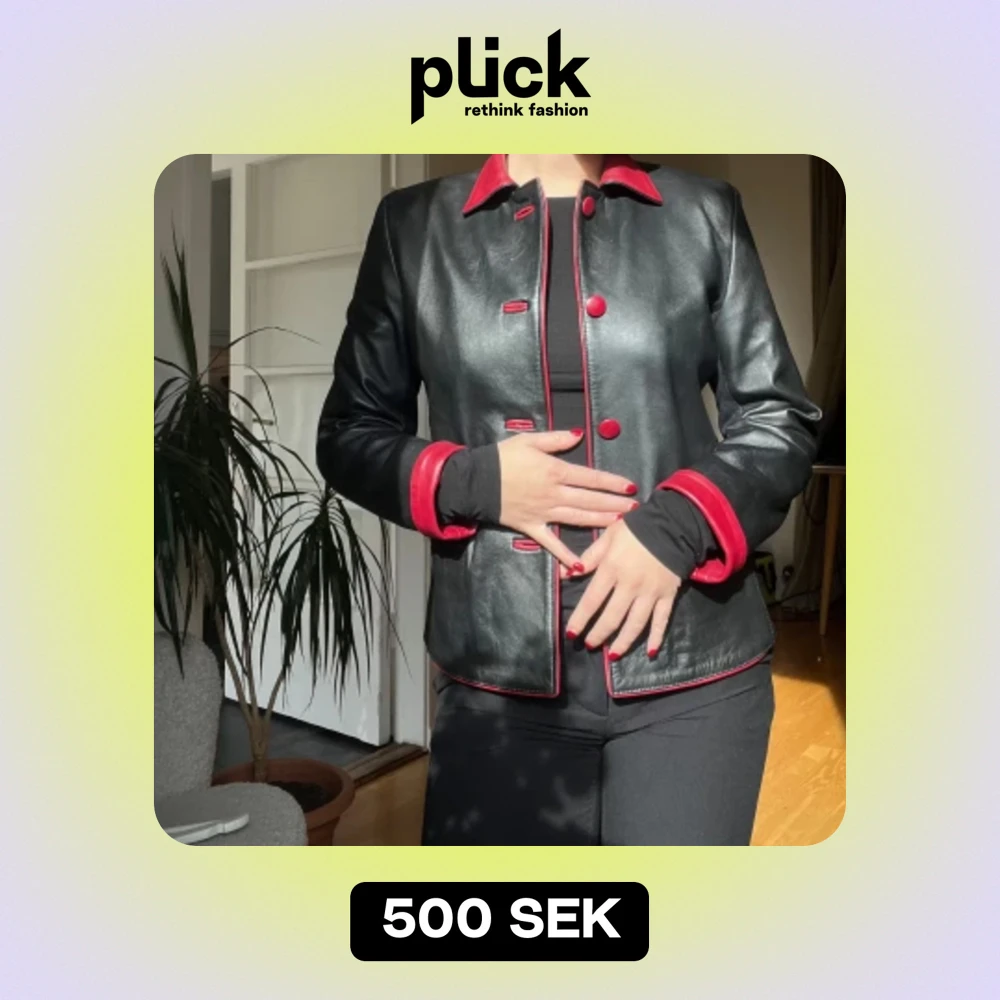 Supersnygg skinnjacka med röda detaljer! ❤️ Fin fint skick och sitter bra! Skulle uppskatta 36a i storlek, köpt secondhand.
