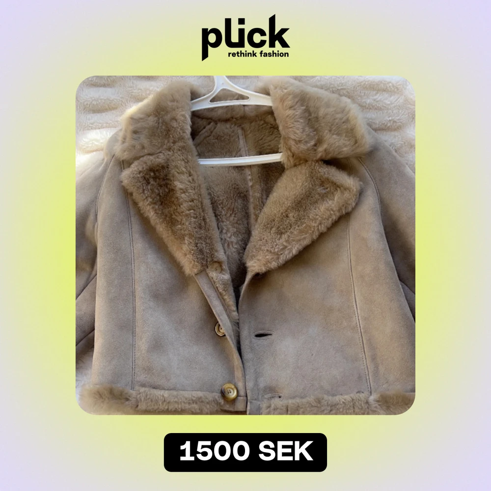 Köpt på Second hand på Södermalm för 2000kr. Beige/grå varm jacka i äkta mocka och päls. Finns inga lappar så märket är okänt.