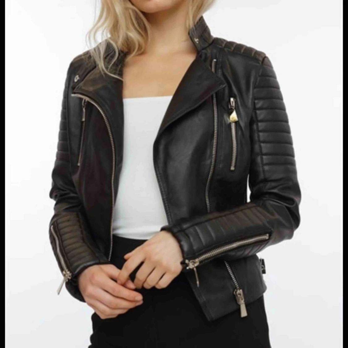 Säljer denna super snygga skinn jackan från Chiquelle då den är förlåten för mig😢💖💖kontakta mig för egna bilder