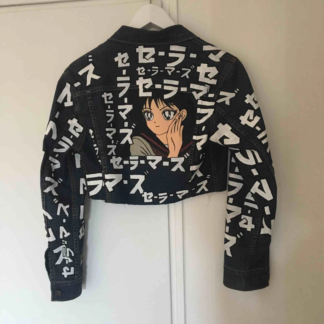 Croppad jeansjacka målad av mig med textilfärg! ✨💖 japansk text セ-ラ-マ-ズ betyder sailormars och även henne på ryggen 🔥