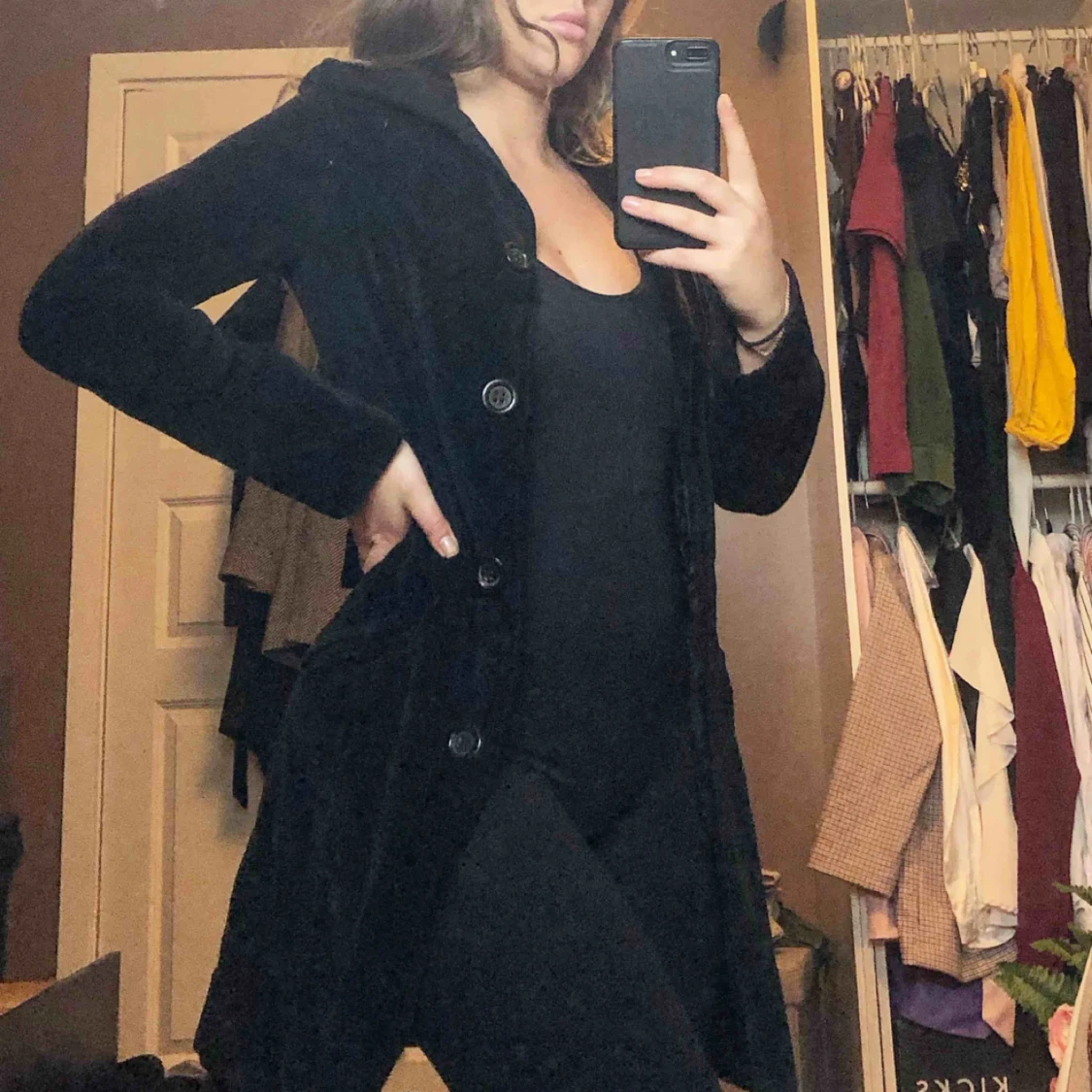Kappa i svart samet, slutar ovanför knäna, aldrig använd! Köpt på second hand butik Frakt ingår i priset
