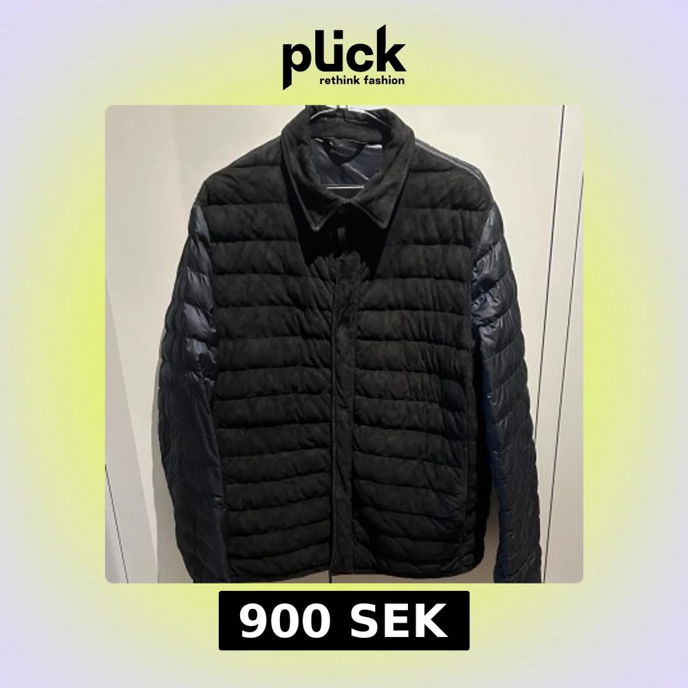 Säljer en mörkblå / navy jacka från Massimo Dutti i storlek L. Jackan har en snygg krage, dragkedja och tryckknappar framtill. Kombinerad mocka / dunjacka. Perfekt för kyliga hösten. Mycket bra skick